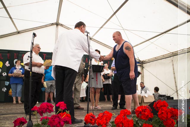 A főzőverseny díjait is kiosztották, de erről majd egy kicsit részletesebben is beszámolnánk. Első a Sör-lé-hűtők csapata lett, a Csabacsűdi Coop-ék, ill. a Csabacsűdiek Baráti Köre előtt. Az idén is megtelt tombolatárgyakkal az azokat bemutató sátor, ahol a fődíj egy mosogatógép volt, de a vigaszdíj nyertese is egy fűnyírót vihetett haza.