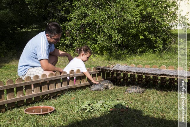 Ottjártunkkor épp a szarvasi Sonkoly család indult útjára két kicsivel, a 6 éves Fannival, és a 3 éves Pannával. Ők nem teljesítmény alapon mentek végig a pályán. Az első állomásnál le is ragadtak, ahol a teknősökkel lehetett barátkozni. Őket egy, a városban turistáskodó apa és nagylánya követte, akik gyorsabban végig értek a pályán.
