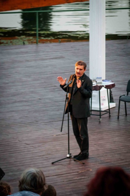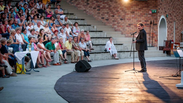 Hétfőn este Petneházi Andrea és Dr. Melis János házigazdák köszöntötték a nagy számban megjelent közönséget, akik elmentek Szarvason a Vízi Színházba, hogy meghallgassák, megnézzék az ország egyik legnagyobb, legigényesebb, legszenvedélyesebb színészét Eperjes Károlyt. Az elmúlt évben éppen a születésnapja előtti napon a Katolikus Kör előadójaként tartott éppen ilyen szenvedélyes előadást akkor a Tessedik Múzeum dísztermében.