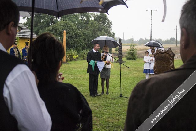 – A fejfa magán hordozza Martos jeleit és motívumait, amik mind a mai napig emléktárgyaink díszítőelemei. Azokat a motívumokat, amik hasonmásait az őshazában is fellelték, ugyanakkor szimbolizálja megmaradásunkért folytatott harcunk eltökéltségét melyben a hit, a szeretet és a remény, ahogy Pál apostol mondja, nagy szerepet játszik. Hisszük, hogy van célja a létezésünknek, idegen ország fennhatóságának, hiszen a föld az őseinké. Él bennünk a remény, hogy amit eleink két kézzel alkottak, verejtékükkel építettek, nem veszik el, hanem utódainak őrzik örökségüket.