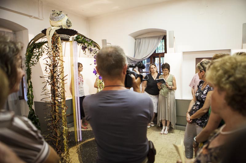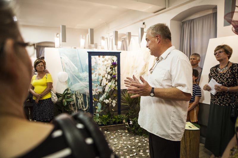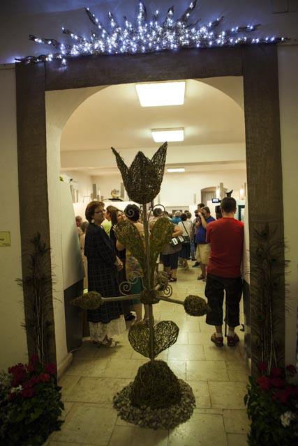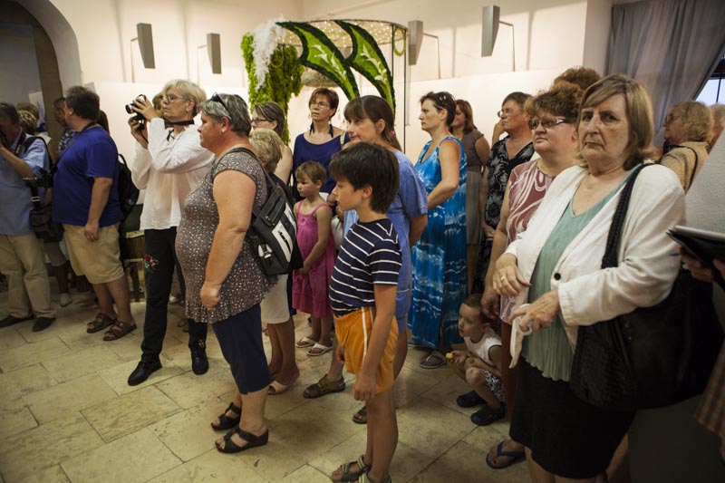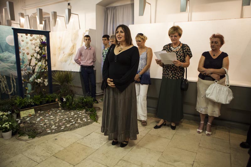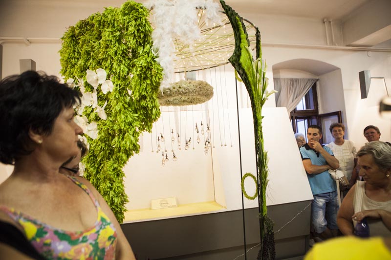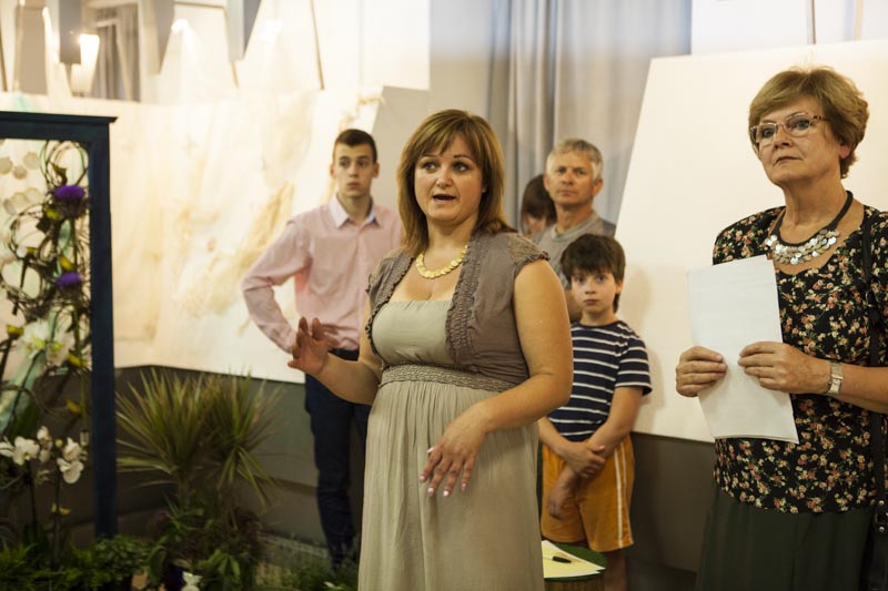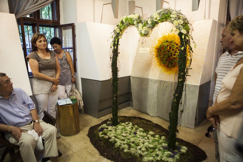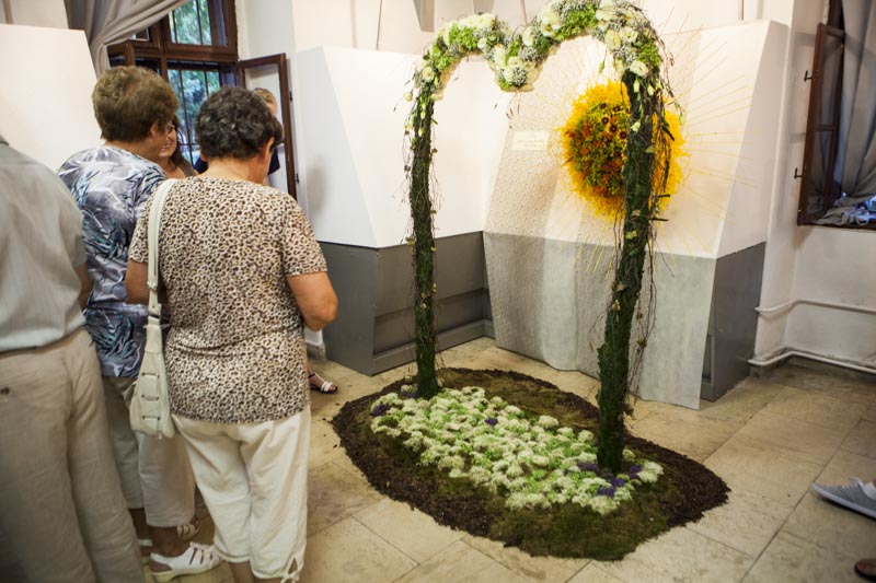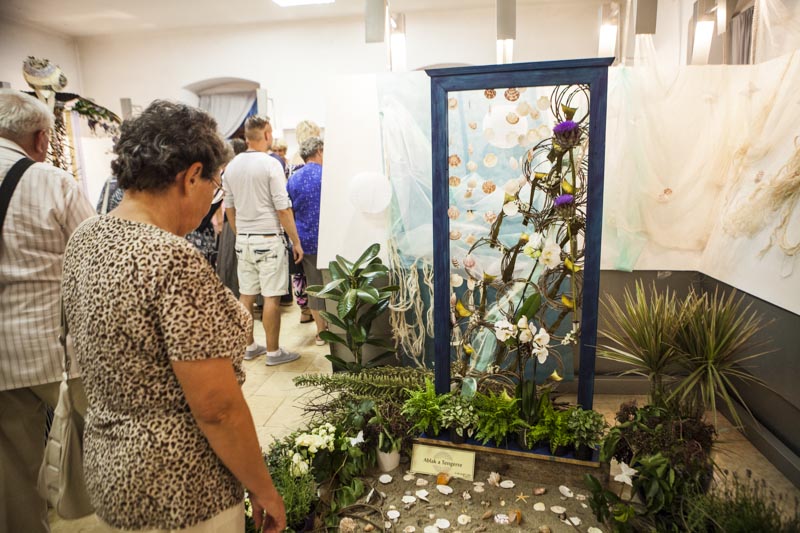 Anikó és Éva (Florárium virágüzlet) az Aranykor kapuja, Angelika és Krisztina (Virág Otthon) Választás, Csík Judit Edit (Boglárka virágüzlet) Ablak a tengerre, Ilike és Anikó (Zöldrózsa virágüzlet) Nyitott határok, valamint Anett, Brigi és Éva (Margaréta virágüzlet) Átjáró a Nap házába című alkotását csodálhatták meg a természetesen többnyire hölgylátogatók. Mind az öt kiállító rövid magyarázatot adott munkájához, ki spirituálisat, ki hétköznapibbat.