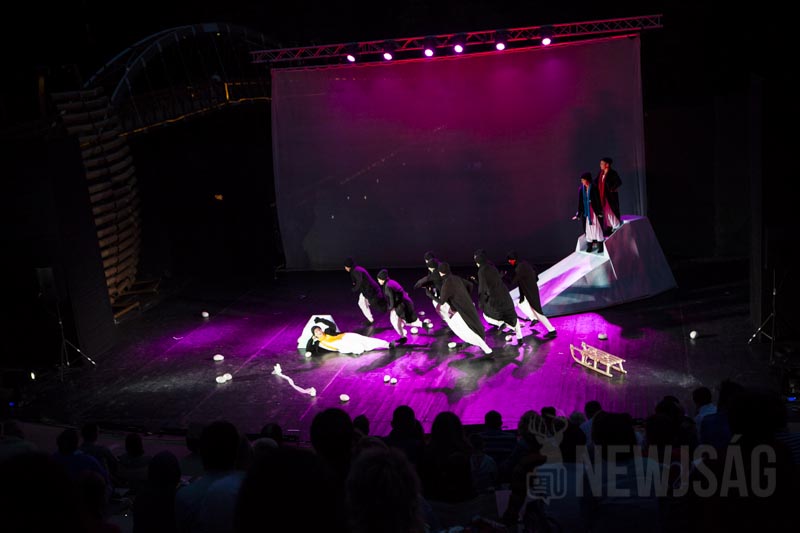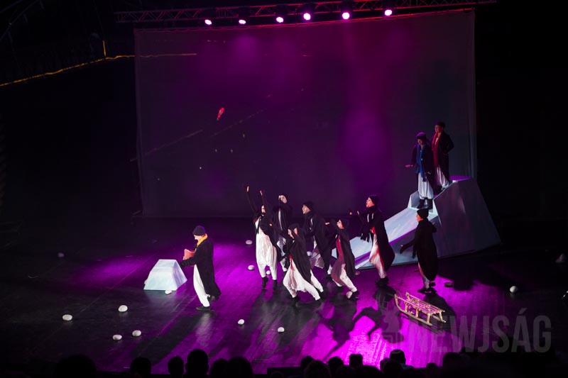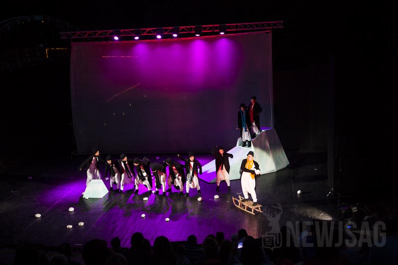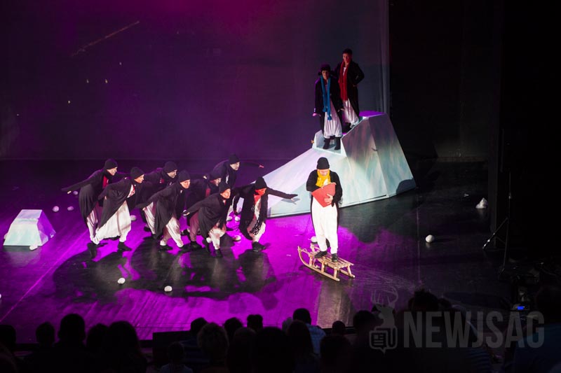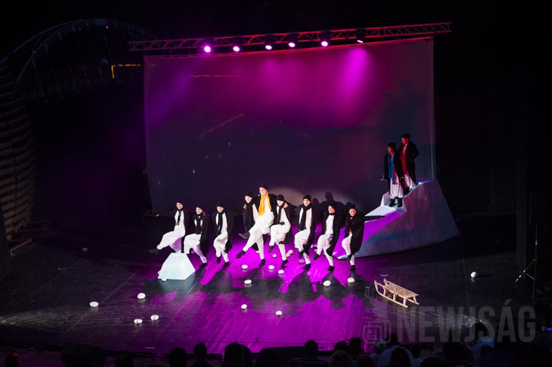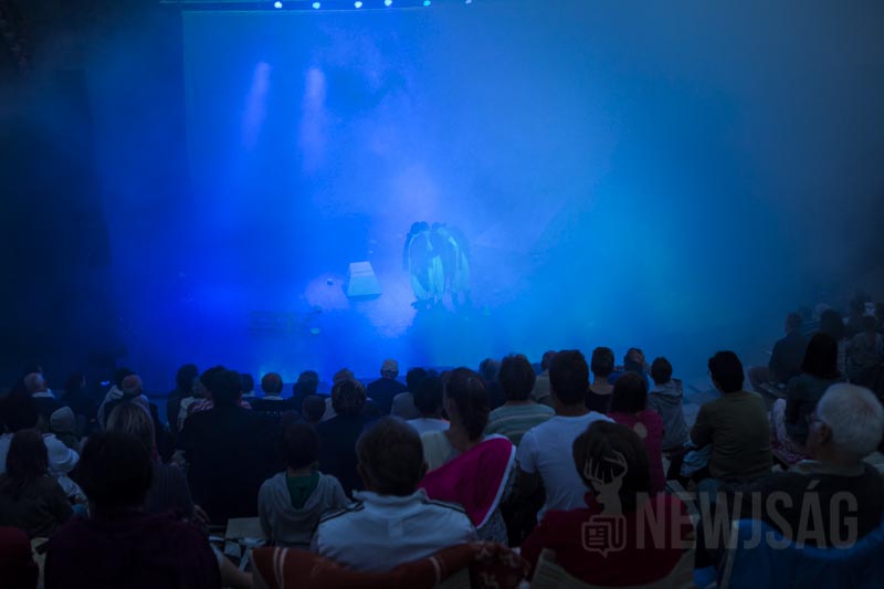 A Pingvinek szerepében Fehér Tímea, Komáromi Anett és Szabó Lajos, a Galamb Csomós Lajos és Noé Jancsik Ferenc. A színészeket kiegészítették még a tánckar tagjai, természetesen pingvinnek öltözve. Nagyon aranyos, kedves mesejátékot láthatott a közönség, humorral bőven átszőve, a színészek nagyon jó alakításokkal adtak nagyon szerethető karaktert a pingvineknek, és a galambnak.