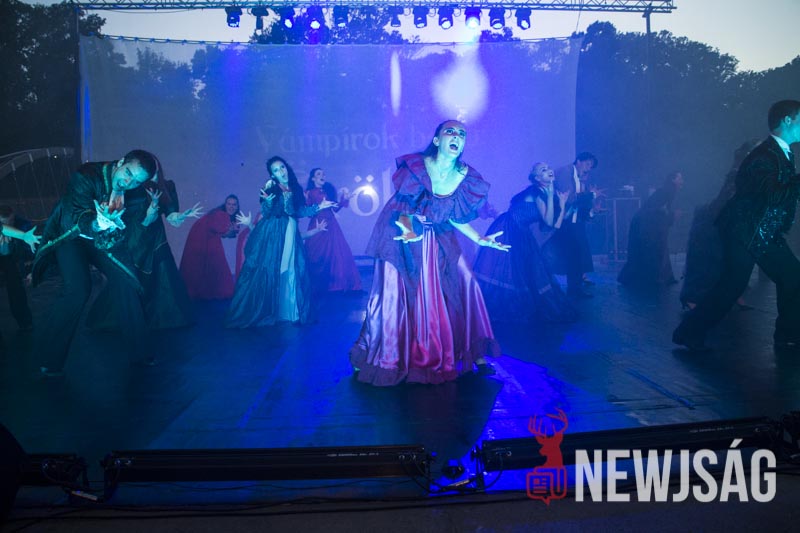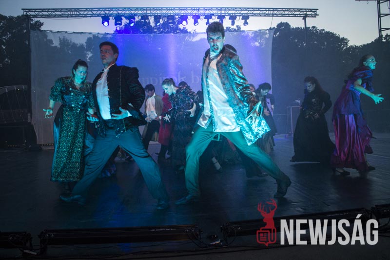 Hétfőn este a Vízi Színház színpadán Gombárné Bata Mária köszöntötte a majdnem teltházas nézőket, a Harruckern János Szakképző Iskola érettségire épülő Színitanházas diákok estjén. A diákok közül sokan ismerősek, mert esténként találkozhatunk velük, hiszen a diákok várják a nézőket kedvesen, mosolyogva, segítőkészen. Hétfőn este a hoszteszek a már végzett diákok voltak, a színpadon pedig a jövő generáció színészeinek tapsolhatott a közönség. Seregi Zoltán a Színitanház oktatásvezetője elmondta, hogy nem csak a színpadon, hanem a háttérben is növendékek vannak, hiszen a világítás, a hangosítás, a jelmezek és a díszlet is a Színitanház növendékeinek munkáját dicséri. A színpadon pedig a táncos és színész hallgatók teljes létszámban jelen lesznek. A műsor címe „Musicalmánia”, vagyis világhírű musicalekből állították össze az este műsorát.