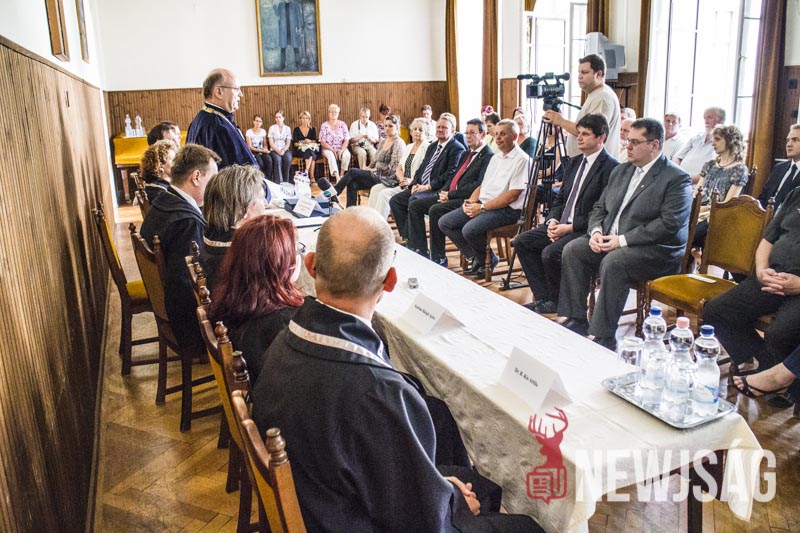 – Annak ellenére, hogy a mi oktatói, hallgatói és egyéb feltételeink stabilak, a magyar felsőoktatás viharos tengerén lavíroztunk mi is, több próbálkozásunk is volt integrációkkal, most viszont úgy érzem, hogy elértük a végállomást és nagyon jó helyre kerültünk – mondta a vendégeknek dr. Lipcsei Imre köszöntőjében.
