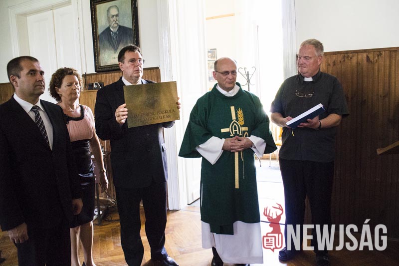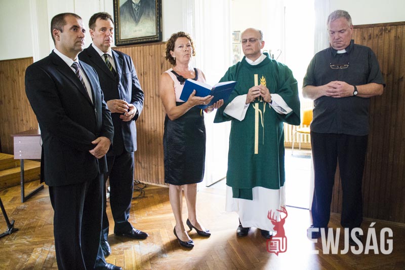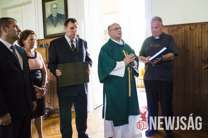 Az ünnepi hozzászólók, Gajda Róbert, Herczeg Zsolt és Babák Mihály után az egyházi vezetők megáldották az intézet új tábláját és az épületet.