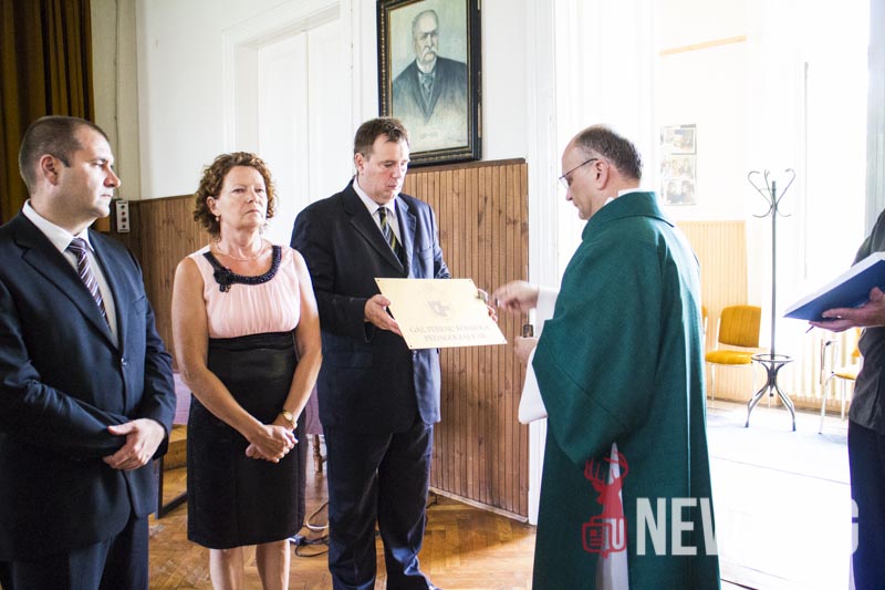 – Örömmel jelentem be, hogy tegnap, 2014. július 31-én a Szent István Egyetem és a Gál Ferenc Főiskola aláírta azt az átadás-átvételi megállapodást, amely szerint mától, augusztus 1-étől, a szarvasi pedagógusképző intézet átkerült a Gál Ferenc Főiskola szervezeti keretébe és átkerült egyházi fenntartásba – mondta dr. Kozma Gábor, majd örömmel mutatta meg a dokumentumot, ahogy ő nevezte, keresztlevelet az ünnepi esemény résztvevőinek.