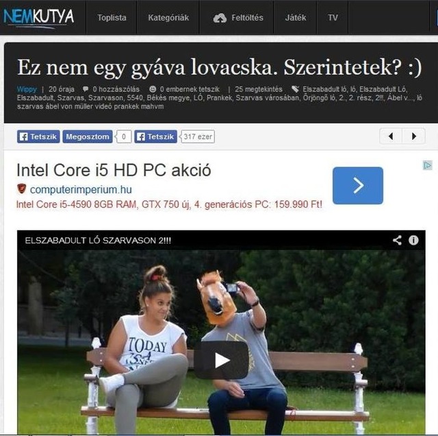 Hozzávalók: két kreatív fiatal, egy kamera és egy lófej. Eredmény: megdöbbent tekintetek és mosolygós arcok városszerte. Molnár Ábel (16) és Németh Zsombor (14) gondolt egy nagyot, és a magyar videós példaképüket követve egy lófejet húztak a fejükre. Körbejárták Szarvas utcáit, forgalmasabb közterületeit és több helyi élelmiszerüzletbe is bemerészkedtek. Közben pedig mindvégig forgott a kamera, amely rögzítette az járókelők reakcióit.