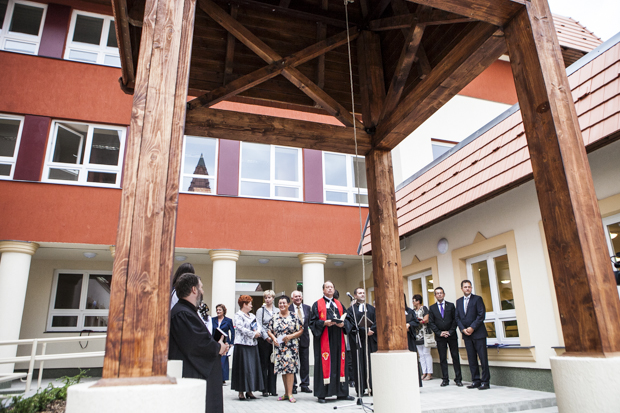 A köszöntők után Babák Mihály polgármester átnyújtotta az iskola kulcsát Gáncs Péternek, aki rögtön továbbadta Kitajkáné Szántai Mária igazgatónak. Az évnyitó istentisztelet után mindenki átvonult az új épület elé, hogy harangszóval és püspöki áldással hivatalosan is birtokba vegyék a diákok az épületet, az érdeklődők megtekinthessék az új Vajdát.