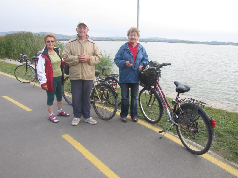 Sukoró mellett kerekezünk el. A Velencei hegység nyúlványain vezet a kerékpárút: helyenként suhanunk, helyenként taposunk, másutt toljuk a kerékpárt. Hiába: a négy kerekező átlagéletkora közel 70 év. De mindez nem okoz gondot: az idő igazi kirándulóidő, ráérünk.