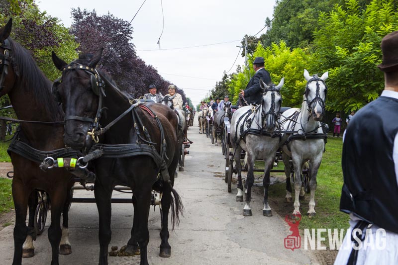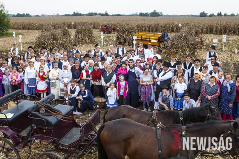 A csapatok lovaskocsikon ülve vonultak a kijelölt területre, hogy bemutassák kukoricatörő technikájukat, amit az öttagú zsűri árgus szemekkel figyelt. Árgus szemekkel, de elégedetten.