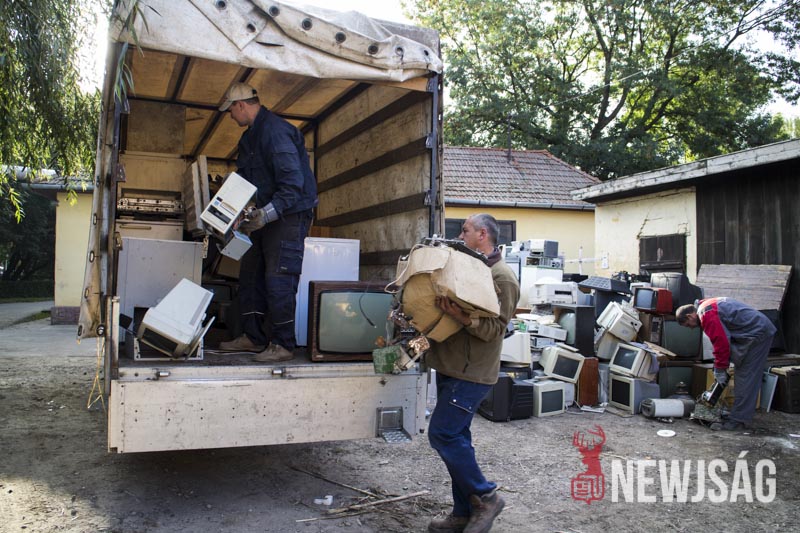 Tavaly 15 köbméternyi, kb. egy teherautónyi háztartási gép, jött össze, az idén ennek a jó duplája. A hulladékért kora reggel érkeztek annak a szentesi cégnek a munkatársai, amelyik szakszerűen fel tudja dolgozni, különválogatni az újrahasznosítható dolgokat.