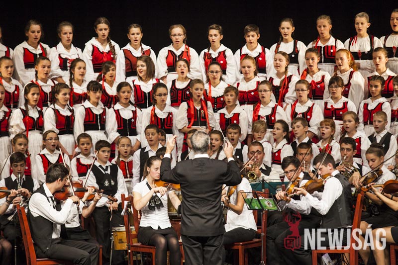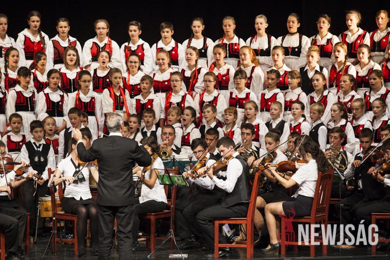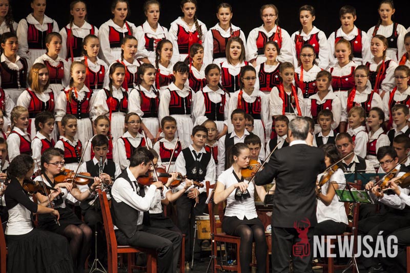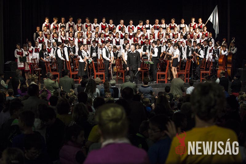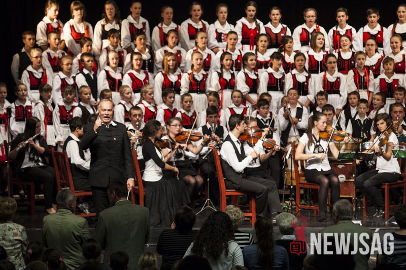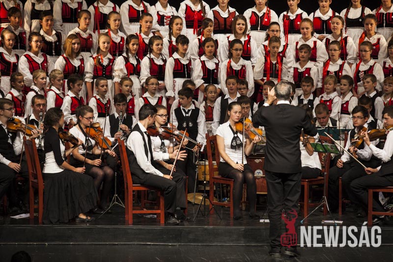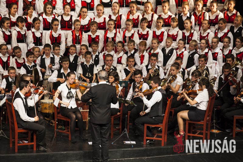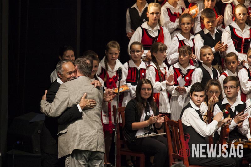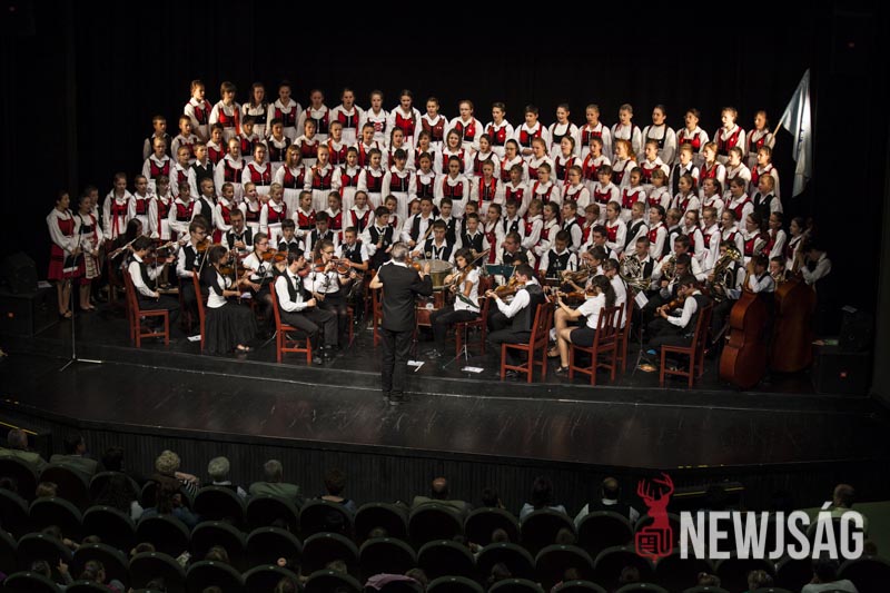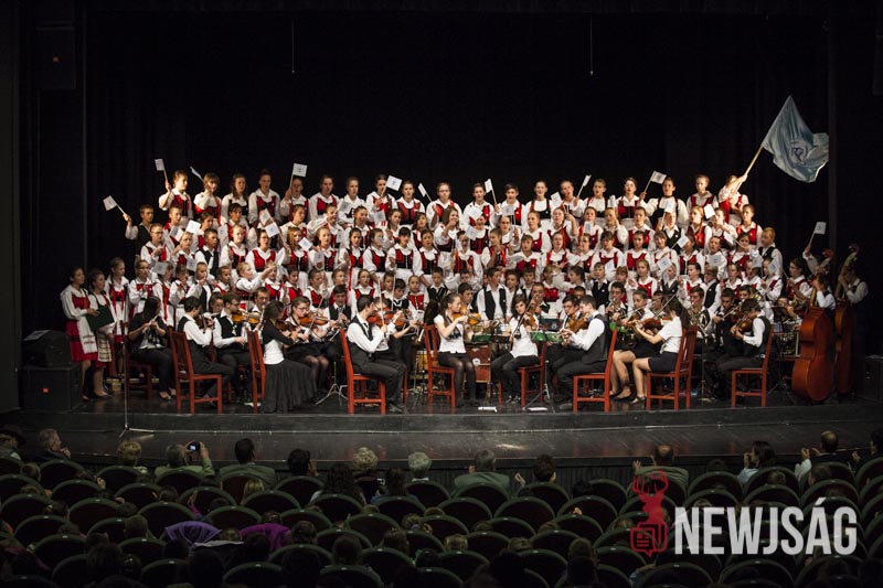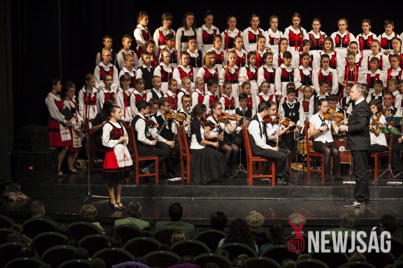 Búcsús ének, magyar népdalok és orosz nyelvű dal egyaránt szerepelt a műsorban, aminek amellett, hogy fellépésükkel több száz szarvasi gyereknek nyújtottak zenei élményt, volt másik apropója is. Köszönetet szerettek volna mondani – ahogy az ifjú műsorvezető hölgy szólította – Erdélyi Pista bácsinak, mert cége, a Gallicoop 10 éve “eteti” a Filit. Ezért és a Haáz Sándor vezette szentegyházi kórusnak más módon nyújtott támogatásáért a Szózattal köszöntötték Erdélyi Istvánt és a 25 éves Gallicoopot.