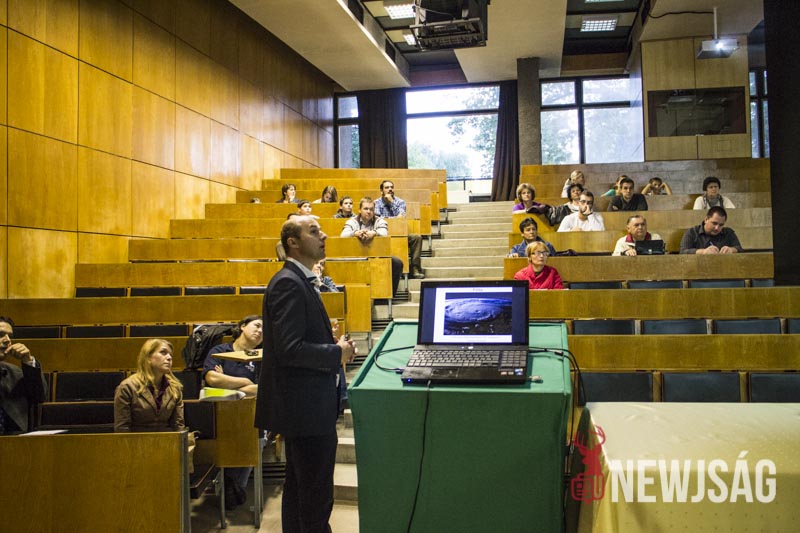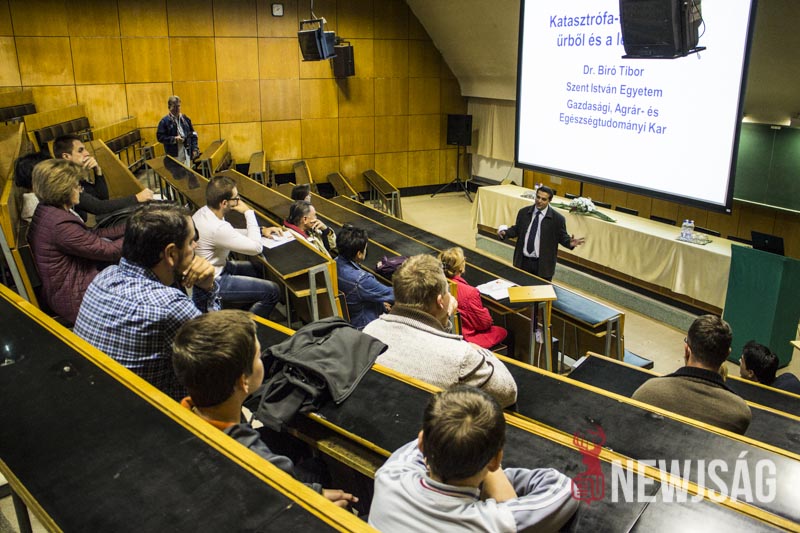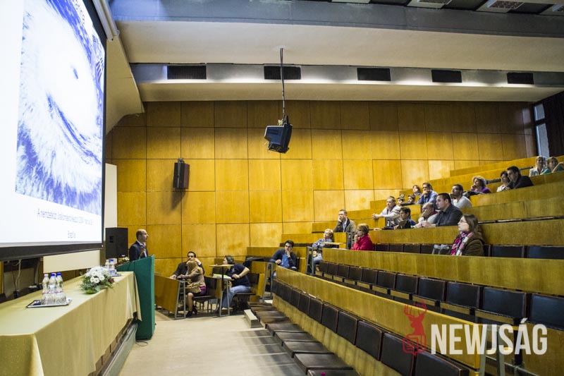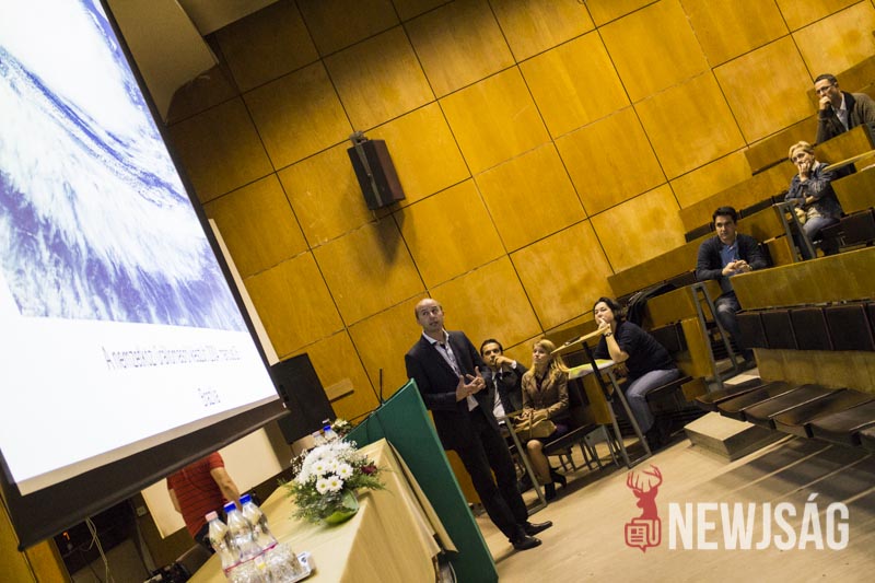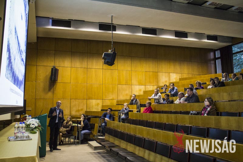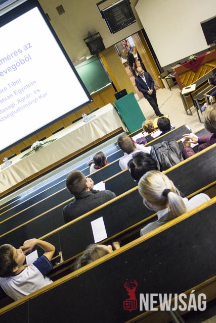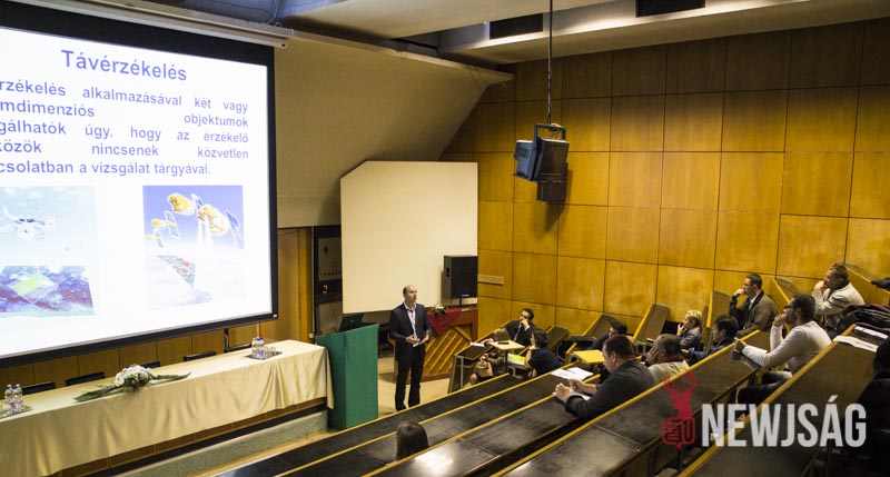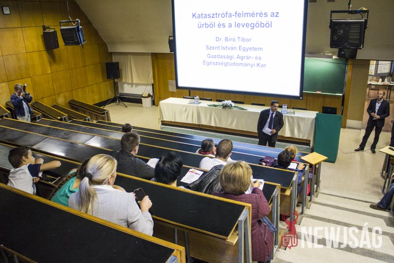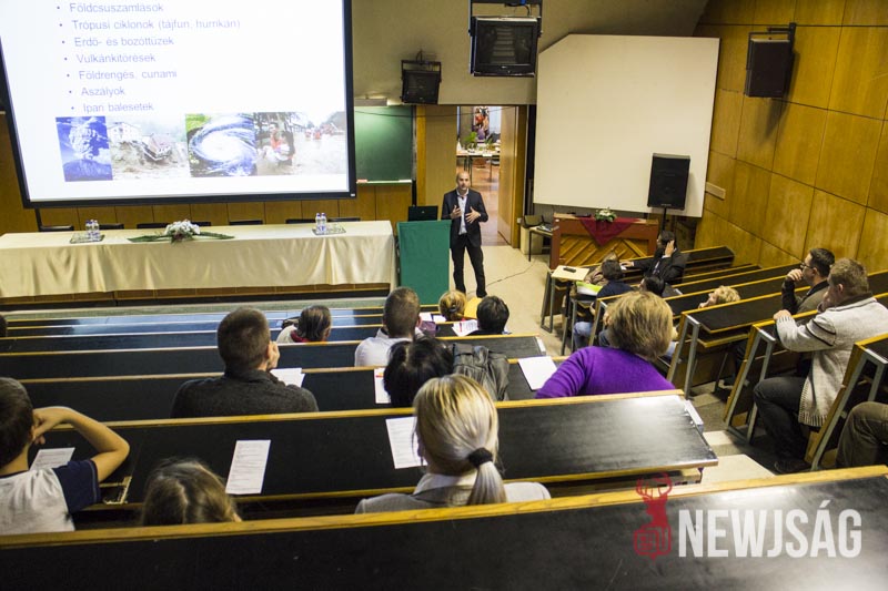 – Talán kevesen tudják, de ez a rendezvénysorozat annak idején azért jött létre, hogy a kutatót mint embert, a kutatást ne egy megfoghatatlan és elérhetetlen történetként mutassa be, népszerűsítse a fiatalok között és vonzóvá, elérhető közelségbe tegye a természettudományt. Érdekes előadásokat lehet ma végighallgatni, de kísérőrendezvényeként a folyosón kémia, látványkémiaként egy-két érdekes reakciót, egy-két látványos kémiával kapcsolatos dolgot nézhetnek meg az érdeklődő fiatalok, dehogy a legkisebbek nehogy megunják a sok előadást készültünk egy-két szórakoztatóbb dologgal is, például a tornateremben ugrálóvár is van – vezette be az előadás-sorozatot dr. Futó Zoltán dékánhelyettes, majd átadta a szót dr. Bíró Tibor dékánnak, aki “a katasztrófa-felmérés az űrből és a levegőből” című előadásában azt a bizonyos elefántcsonttorony-szerűséget próbálta eloszlatni, feltörni ami ma a kutatókat körülveszi.