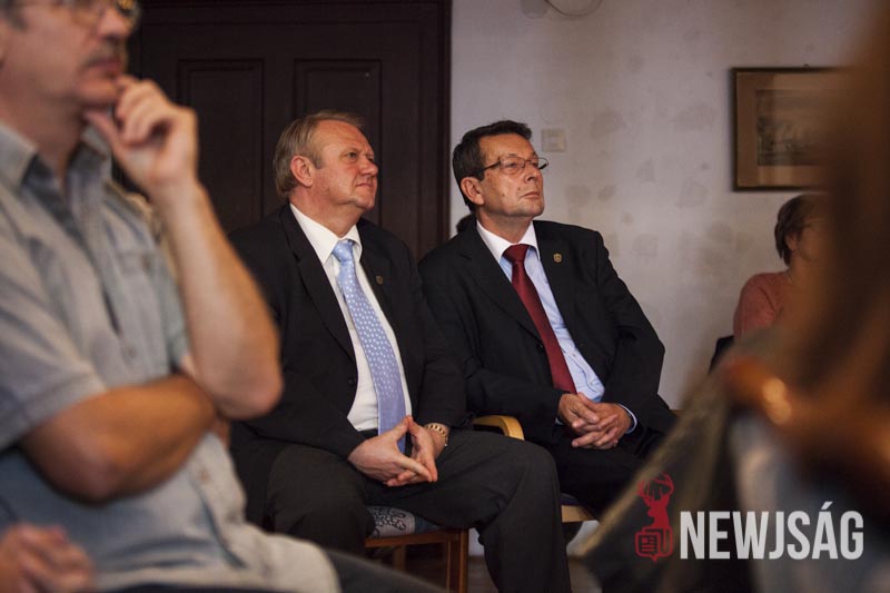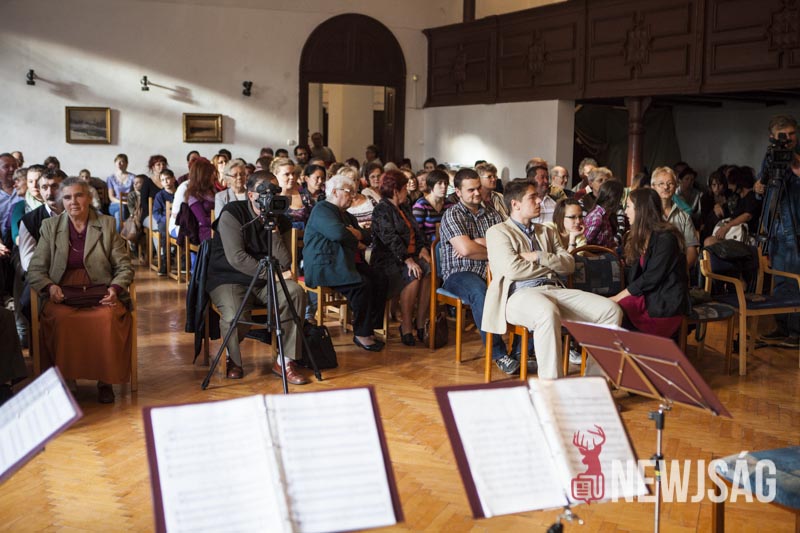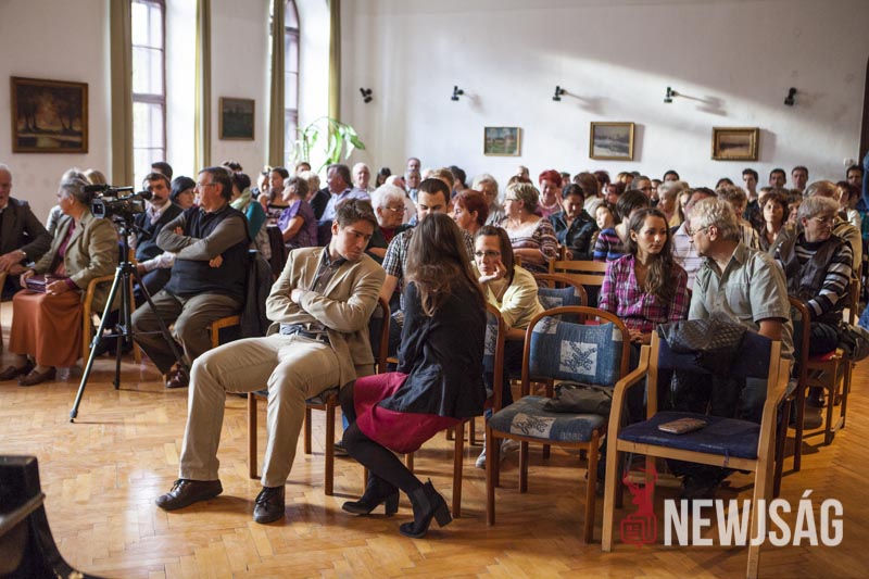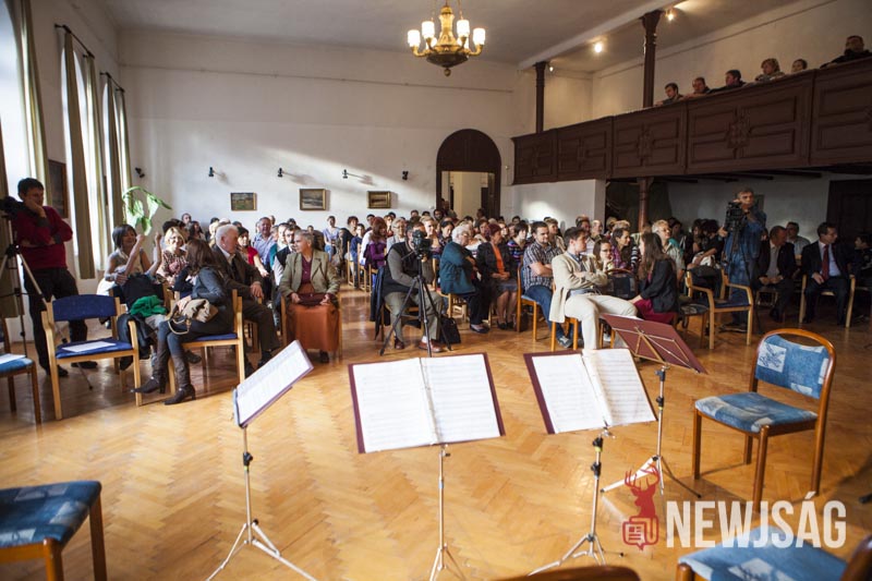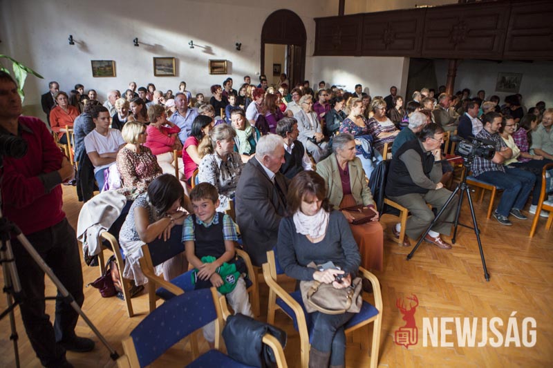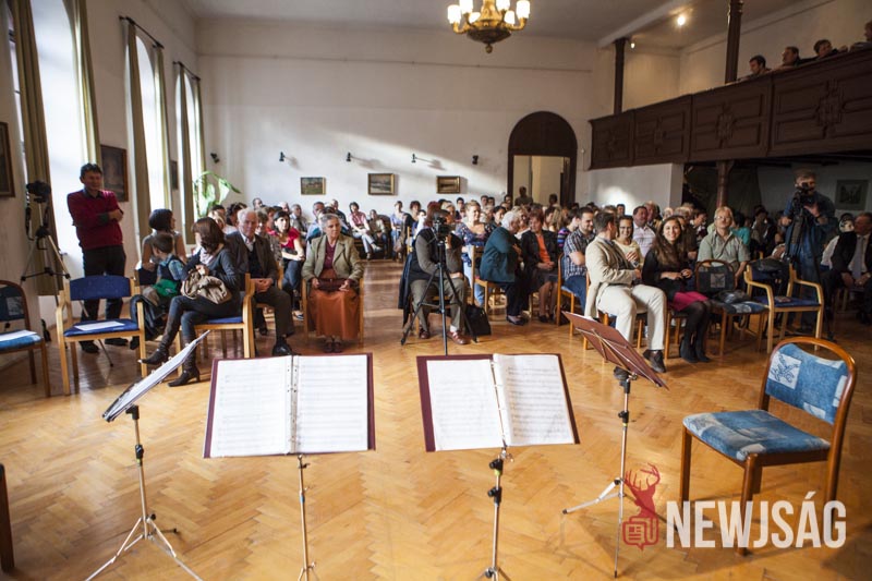 Meghatódásának és megtiszteltetésének adott hangot Szabados-Tóthné Kozák Ilona tegnap este annak a hangversenynek az elején, amit a Szabados-Tóth család tagjai adtak a Tessedik Sámuel Múzeum dísztermében. A helyiségben elhelyezett 120-130 szék mindegyikén ültek a család és a zene barátai, akik nem csak helyből, de az ország szinte minden részéből érkeztek. Az utoljára érkezőknek már az igazgatói iroda foteljeit hozták ki, de azután már csak állóhelyek maradtak.