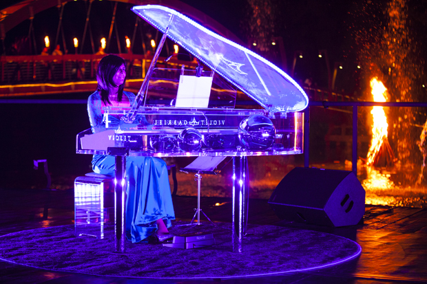 Az ünnepélyes eseményt igazi zenei élménnyel készítették elő a szervezők. A színpadon egy üvegzongora várta a nézőket, ami a világon egyedülálló módon beépített, változtatható színű LED-világítással rendelkezett. Az átlátszó zongoratestben hiába keresték az érdeklődők a húrokat. Azokat egy digitális Roland klaviatúra helyettesítette. A hang egy végfokon és hangfalakon keresztül szólt, de kihangosítható is volt.