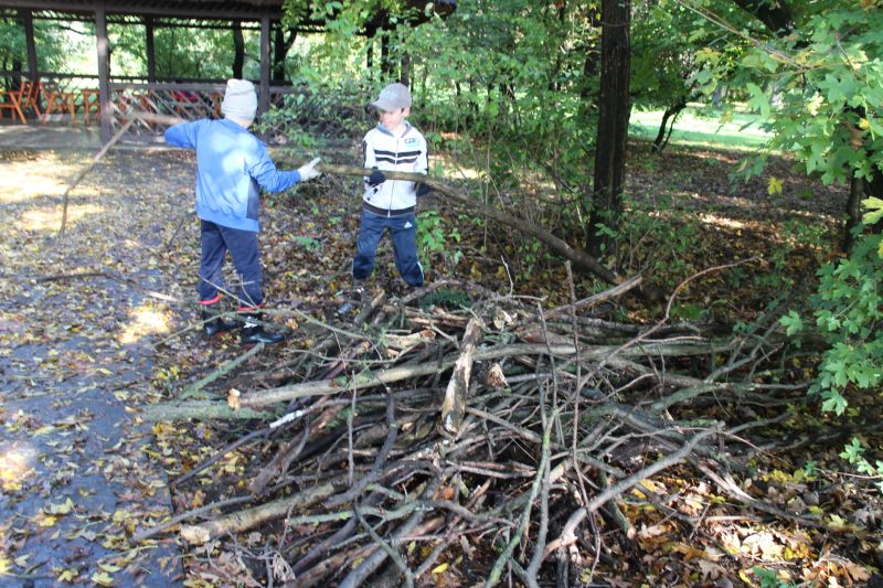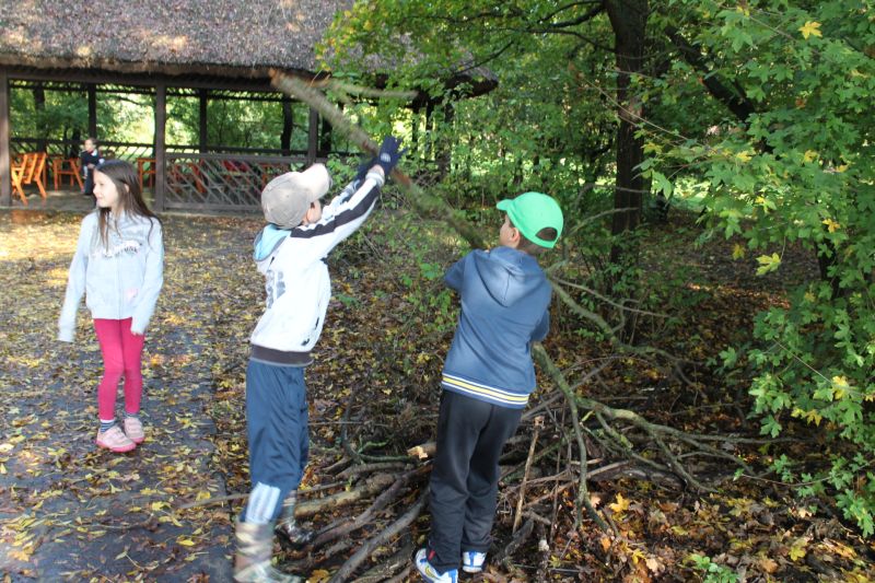 A Benka Gyula Evangélikus Általános Iskola 3. c osztálya rövid uzsonnaszünetet követően nekilátott a rőzsegyűjtésnek és a meglehetősen sáros talajjal mit sem törődve lelkesen halmozták egymásra az elszáradt gallyakat.