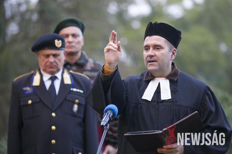Az újraszentelésre szombaton, mindenszentek napján került sor. Az ünnepélyes eseményen Szenes János olvasott fel részletet saját könyvéből, majd Lázár Zsolt, evangélikus esperes mondott rövid imát és áldotta meg az emlékművet. Őt Zetényi Csukás Ferenc altábornagy, országos parancsnokhelyettes követte ünnepi emlékezésében. “Emlékezni kell, felejteni pedig nem szabad!”, figyelmeztette a megjelenteket Babák Mihály is. Polgármesterünk után Publik Antal előadóművész és Vass Ildikó népdalénekes lépett a mikrofonhoz, hogy az esemény ünnepélyességét emelje.