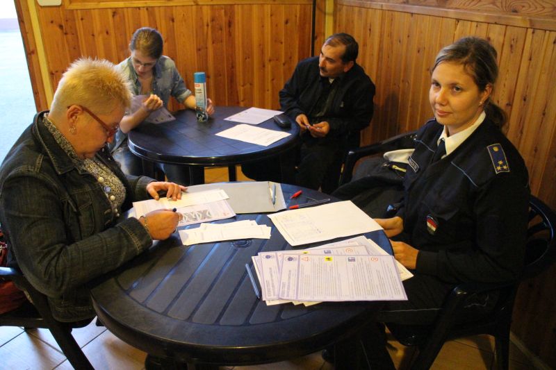 Az autók átvizsgálása közben a tulajdonosok sem unatkoztak. Ez idő alatt elméleti tudásukról adhattak számot, egy 15 pontból álló KRESZ-teszt kitöltésével.
