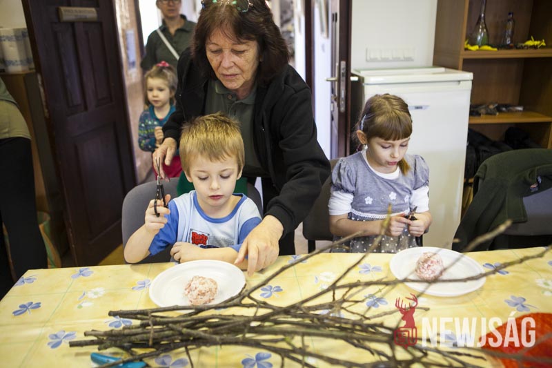 – Madáretetőket fogunk készíteni az újrafelhasználás jegyében, különféle olyan anyagokból amiket egyébként a szemétbe dobnánk – árulta el a délelőtt kézműves programját Körömi Krisztina, a nemzeti park munkatársa. – Utána madárkalácsot fogunk gyúrni a gyerekekkel, a felnőttekkel, a családokkal közösen.