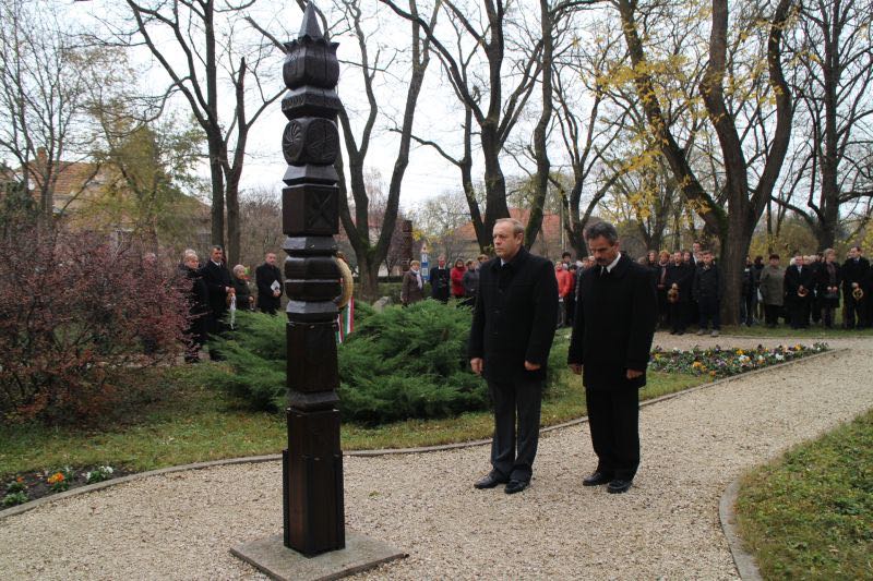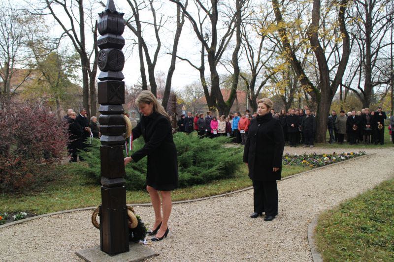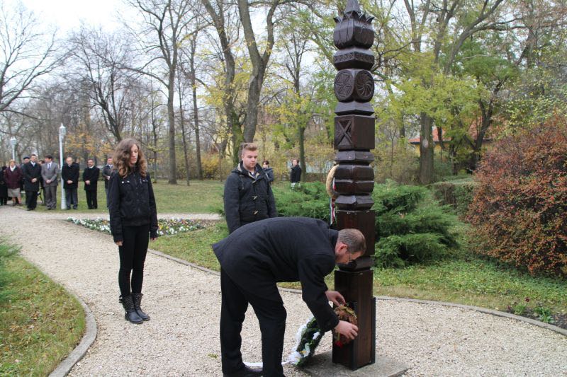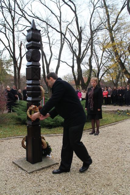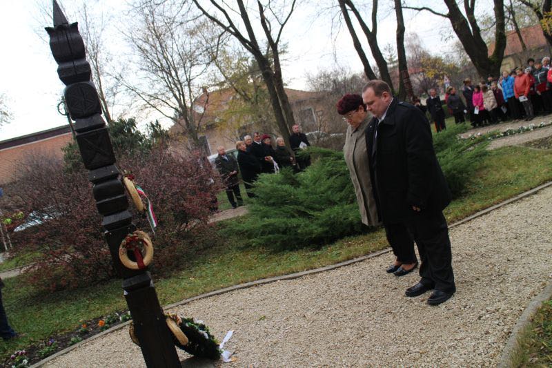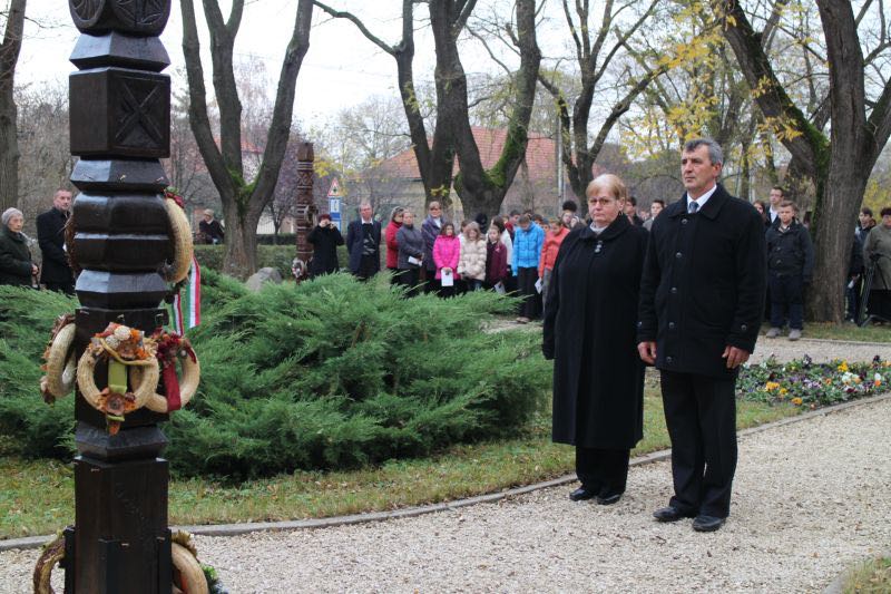 A rendezvény végén a résztvevők koszorúkat helyeztek el arra az emlékoszlopra, amelyet 10 éve, a település újjászületésének 80. évfordulójára állíttatott az önkormányzat.