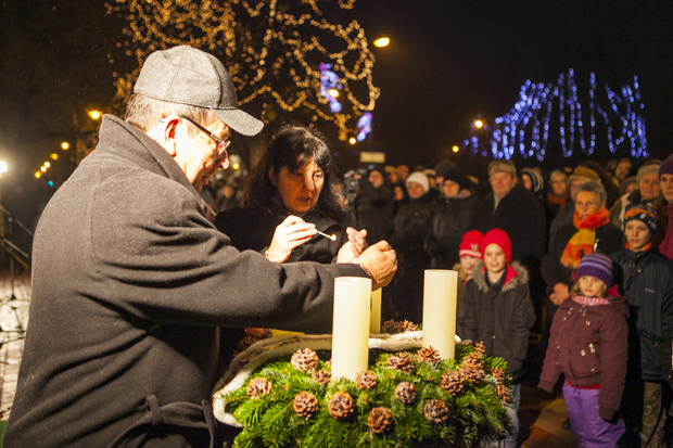 – Jézus jön, és mi a vele való örömteli, nagy találkozásra várunk. Hogy mikor következik be ez a találkozás, azt csak Isten tudja, de mi készülünk rá évről évre. Ünnepi díszbe öltöztetjük szívünket, lelkünket, s várjuk a pillanatot, amikor végre megláthatjuk őt – fogalmazta meg helyettünk is Cairns-Lengyel Henriett, majd polgármesterünk segítségével meggyújtotta az első gyertyát.