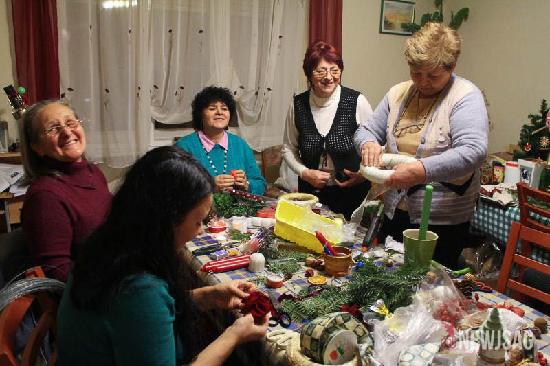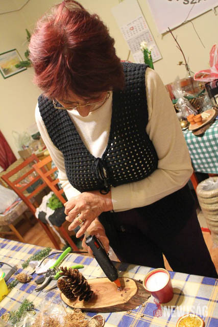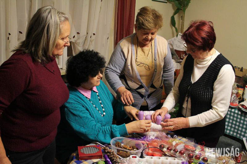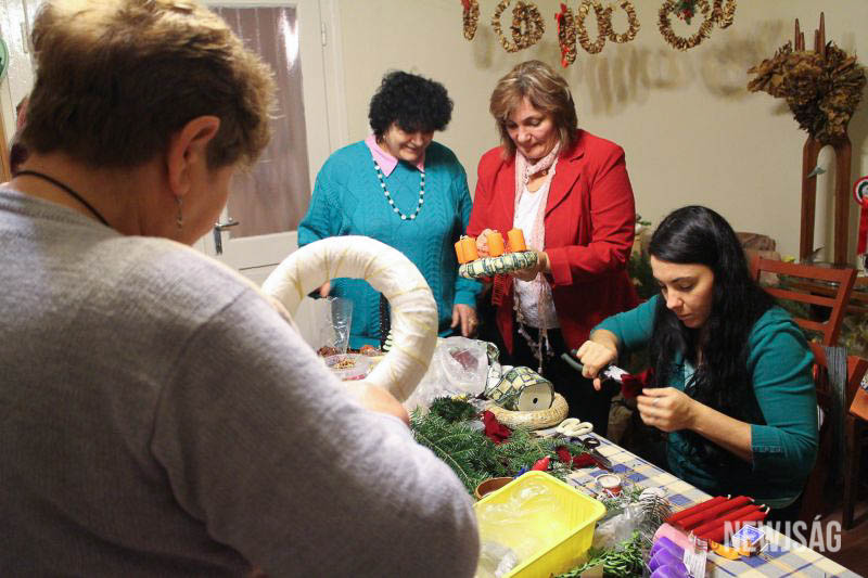 Az adventi koszorúk, kopogtatók és asztaldíszek készítése már két hete elkezdődött. Egy maroknyi csapat minden délután 4-5 órán keresztül tüsténkedik az aprócska helyiségben, miközben a terem zugaiban egyre több ajándéktárgy halmozódik fel. A civil szervezet ugyancsak ide várja a jótékony célú felajánlásokat is: játékot, feleslegessé vált használati tárgyakat, mézet, diót és tartós élelmiszert.