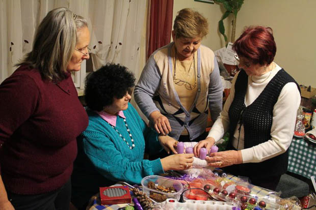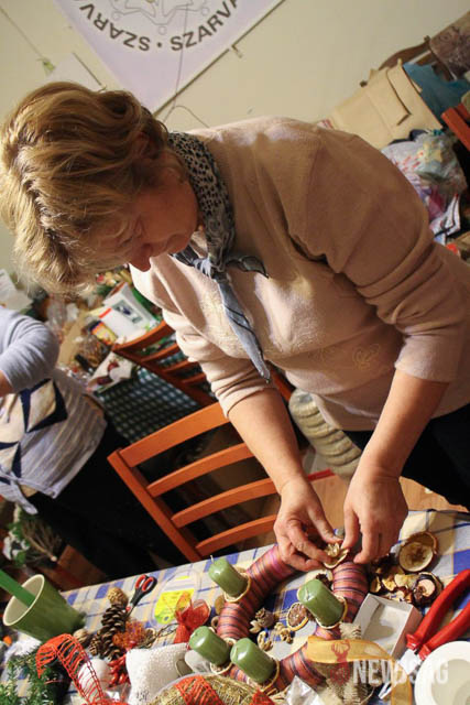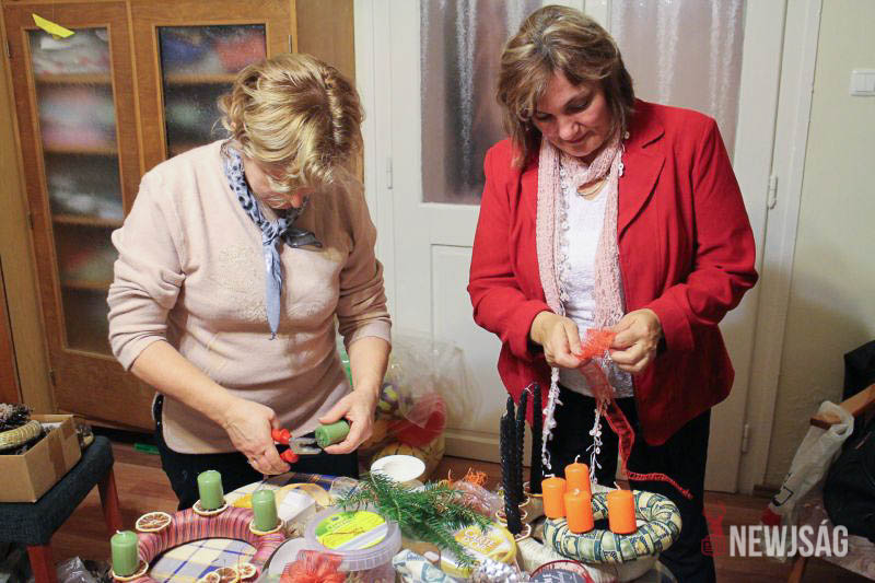 Az adventi koszorúk, kopogtatók és asztaldíszek készítése már két hete elkezdődött. Egy maroknyi csapat minden délután 4-5 órán keresztül tüsténkedik az aprócska helyiségben, miközben a terem zugaiban egyre több ajándéktárgy halmozódik fel. A civil szervezet ugyancsak ide várja a jótékony célú felajánlásokat is: játékot, feleslegessé vált használati tárgyakat, mézet, diót és tartós élelmiszert.