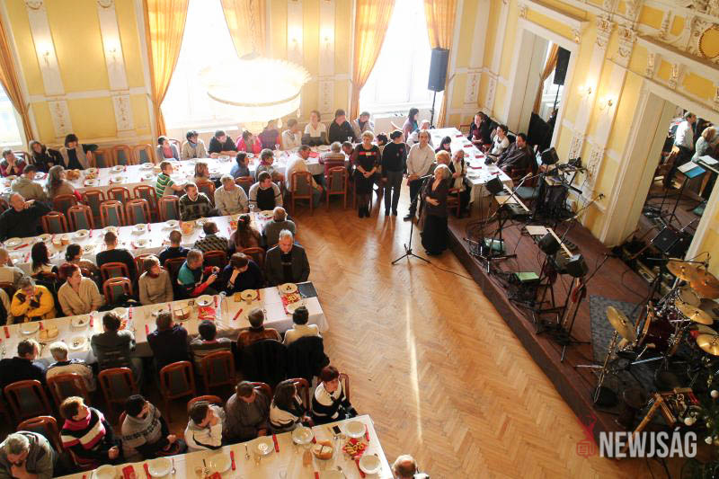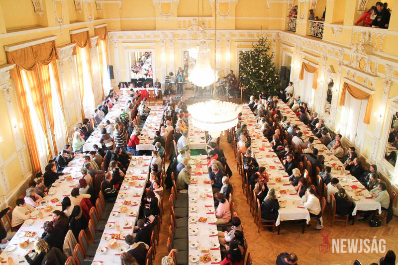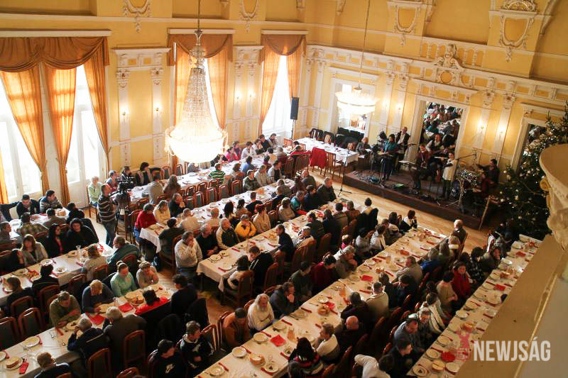 Nemcsak a karácsonyfa, hanem a környezet is ünnepien csillogott december 15-én, a „Mindenki karácsonya” címmel meghirdetett rendezvényen. Több mint tíz év után ugyanis idén először nyitották meg a program előtt az Árpád szálló dísztermét, amely megterített asztalokkal fogadta a meghívott családokat.