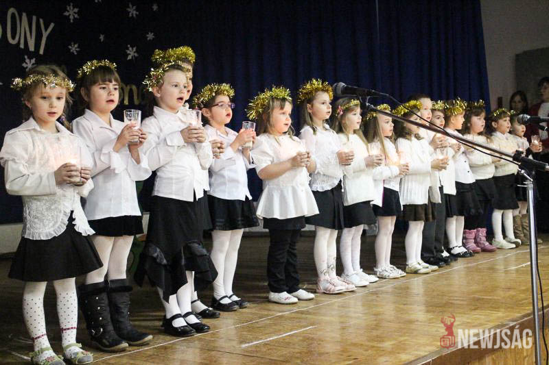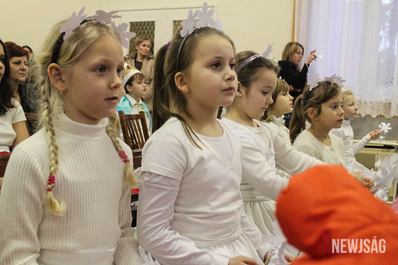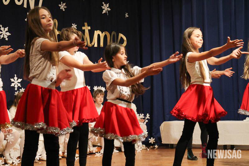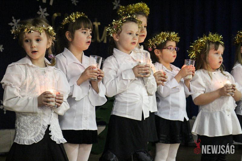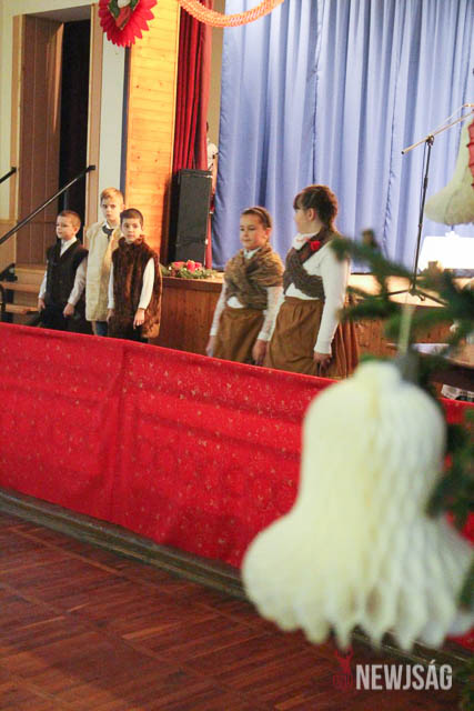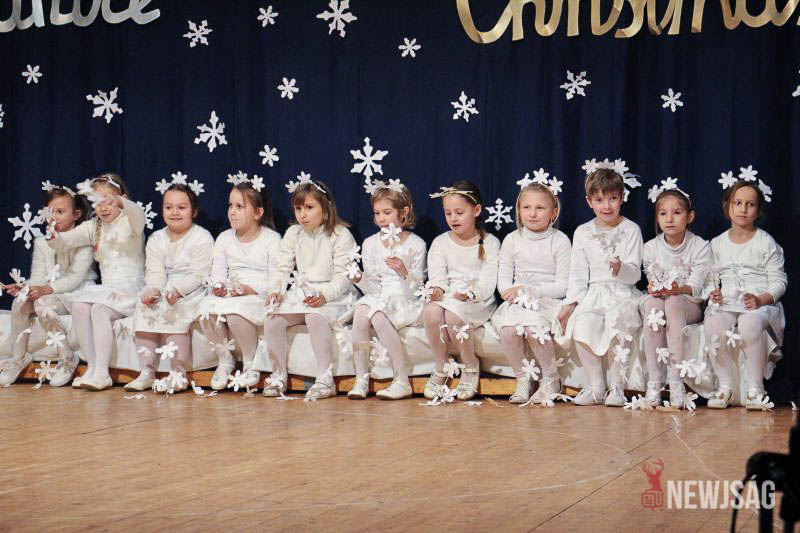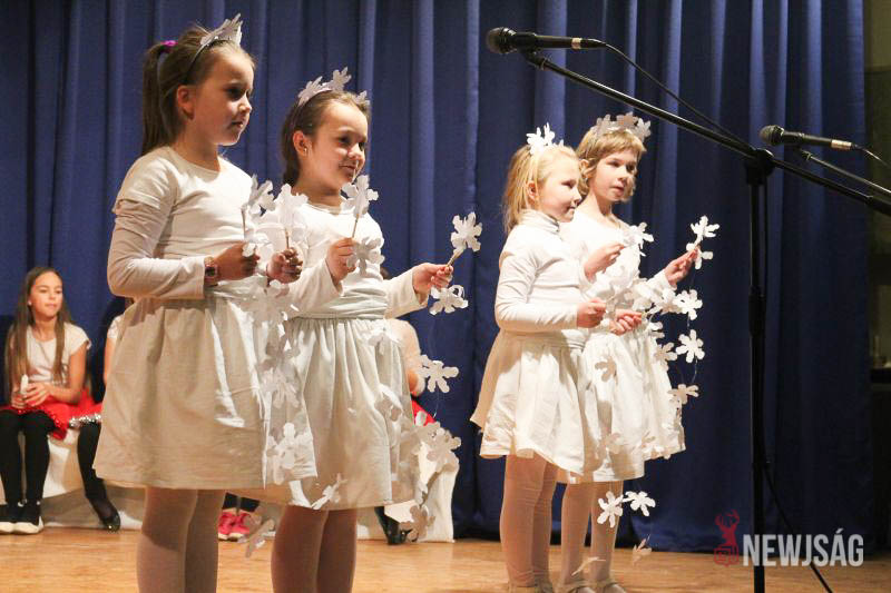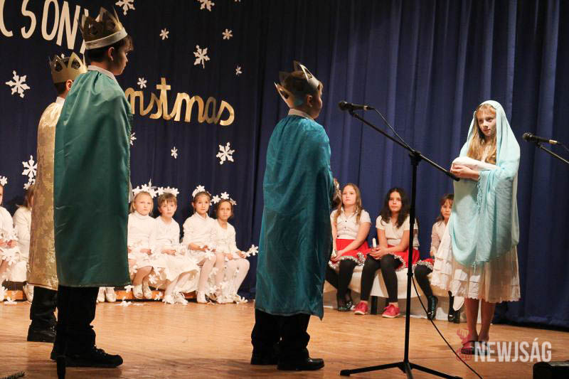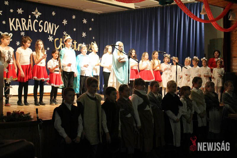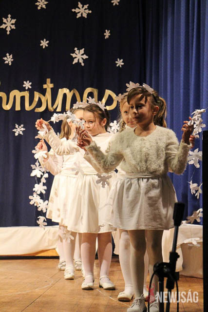 A műsort a legkisebbek, a Hársliget Óvoda angyalkái kezdték, stílszerűen karácsonyfadíszből font glóriával a fejükön. Őket az általános iskola zenés, táncos produkciói követték. A sokszínű műsorszámokban bemutatkoztak a citerások, az alsósok hópihéket formázva varázsoltak téli hangulatot, a felsősök pedig Mariah Careyt idézve hozták el az ünnep egyik kihagyhatatlan slágerét. Az előadás végén, jelmezes formában, a diákok a betlehemi történetet is felidézték.