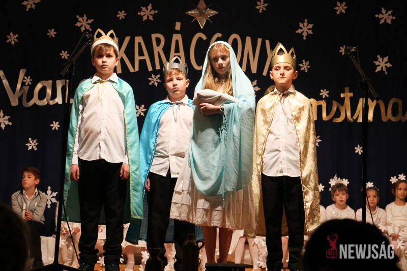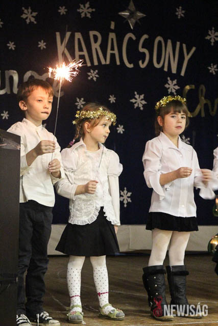 A műsort a legkisebbek, a Hársliget Óvoda angyalkái kezdték, stílszerűen karácsonyfadíszből font glóriával a fejükön. Őket az általános iskola zenés, táncos produkciói követték. A sokszínű műsorszámokban bemutatkoztak a citerások, az alsósok hópihéket formázva varázsoltak téli hangulatot, a felsősök pedig Mariah Careyt idézve hozták el az ünnep egyik kihagyhatatlan slágerét. Az előadás végén, jelmezes formában, a diákok a betlehemi történetet is felidézték.