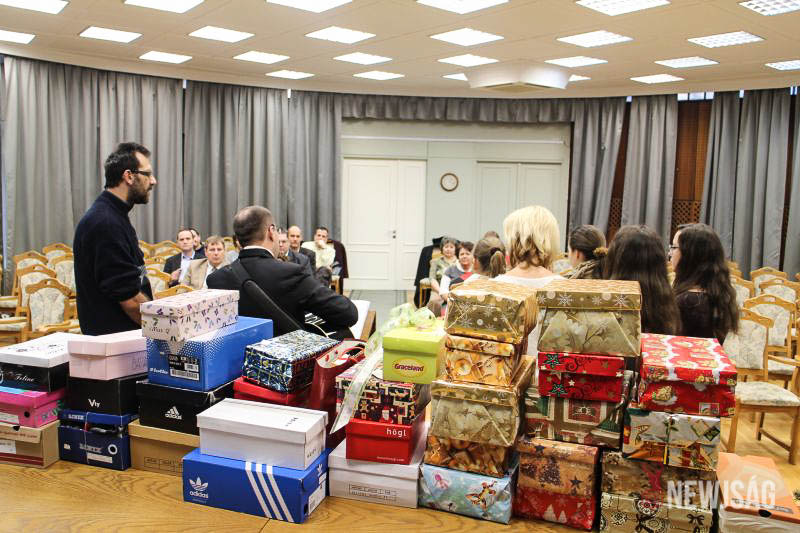 Ez a gondolat vezérelte a Szarvasi Járási Hivatalt és a Gál Ferenc Főiskola Pedagógiai Karát a karácsony előtti utolsó napokban. Ezt erősítette az is, hogy a Newjságon kívül egyetlen helyi médium sem kapott meghívást az intézmények közös akciójára. A Polgármesteri Hivatal földszinti termében 34 cipősdobozt halmoztak fel a kezdeményezők, amelyek a rászoruló családok számára rejtettek apró karácsonyi ajándékokat.