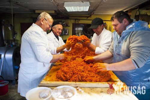 – Hét órakor fogtunk hozá a feldolgozásához. Jelen pillanatban már a kolbász töltésénél tartunk. A baráti társaságnak több mint a fele, úgy 22-24-en vesznek részt az eseményen, amit 2010 óta minden éveben megrendezünk – mondta András Attila a csabacsűdiek baráti körének hagyományőrző disznótorán szombaton.