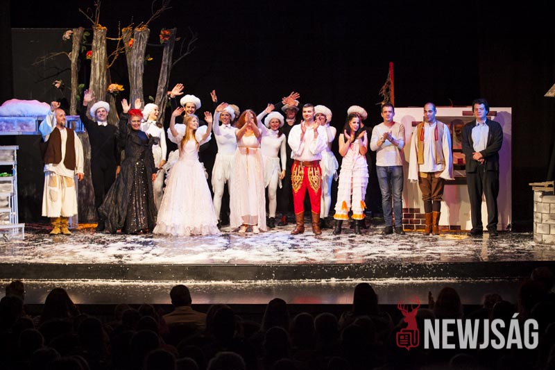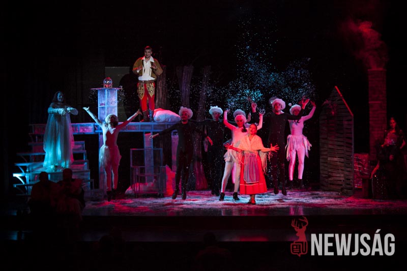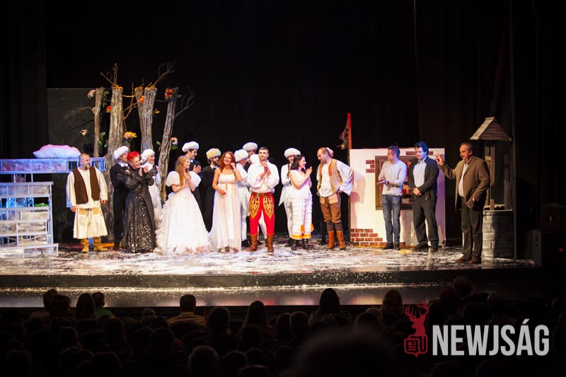 Az előadásról már írtam egy éve, de a békéscsabai bemutató kapcsán is megjelent kritika a Newjsag „hasábjain” december elején. Csak annyit, hogy Dósa Zsuzsa, Kolti Helga, Tatár Bianka, Liszi Melinda, Benkő Géza Gulyás Attila és Polák Ferenc láthatóan örömmel, nagyon jó alakítással játszották szerepüket, a közönség nagy tapssal, ovációval jutalmazta alakításukat.