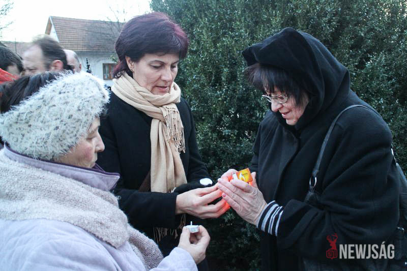 A megemlékezés zárásaként a részvevők koszorúkat helyeztek el és mécseseket gyújtottak az emlékoszlopon.