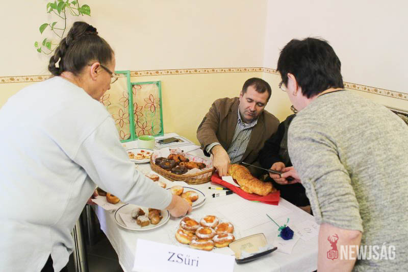 Dernovics László önkormányzati képviselő és Lázár Zsolt esperes számára is szolgált némi meglepetéssel a délelőtt. A legidősebb klubtaggal karöltve ugyanis elfoglalhatták a zsűri székét, és értékelték a fánksütő versenyre érkezett nevezéseket.