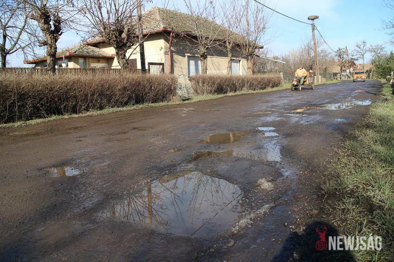 – Ez az utunk lassan már csak saját felelősségre járható. Itt már annyi fáradtságot sem vesz a fenntartó, hogy kitegye a rossz útszakasz táblát, mert ez felfelé minősíteni ezt a szakaszt – mondja keserűen Sinka Imre polgármester. Az ígéretekkel tele van már a padlás. Legutóbb a választások előtt hangzott el, hogy felújítanak egy 200 m-es szakaszt, de ezt sem tartották be.