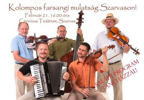 A népzenét az összetéveszthetetlen humorral és játékossággal ötvözi a Kolompos együttes. Az 1988-ban alakult formáció az elmúlt évtizedekben már számos óvodába és iskolába ellátogatott, táborokat szervezett, és szinte minden évben új kiadvánnyal örvendeztette meg a Kolompos-rajongókat. Szarvason a kis csapat már visszatérő vendégnek számít, legutóbb 2013 nyarán a Vízi Színházban találkozhatott velük a közönség. Ezúttal február 21-én, 16 órától a Cervinus Teátrumba várják a családokat, egy kihagyhatatlan Kolompos-koncertre.