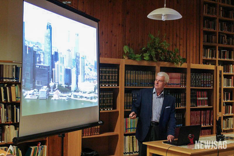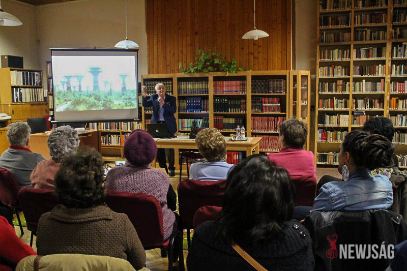 Dr. Karikó Sándor aprólékos precizitással számolt be a másfél hét kalandjairól, amelyeket több száz saját készítésű fotóval illusztrált. Ezek többsége építészeti, természeti, valamint vallási oldalról közelített a látnivalókhoz, de néhány kulináris különlegességbe is beavatta a hallgatóságot.