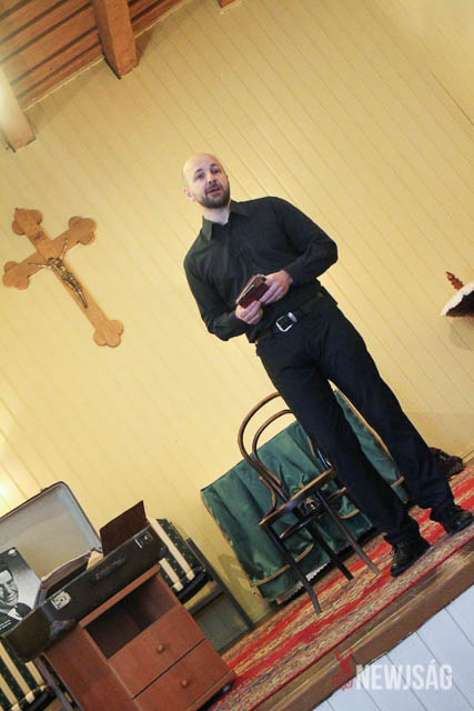 – Gyerekeknek már többször tartottunk alapítványi előadást, amelyet a Cervinus Teátrumból adaptáltunk a mi színpadunkra – vázolja az ötlet alapjait Lázár Zsolt esperes. Ennek folytatásaként arra gondoltunk, hogy a kamaraszínpadra írt darabokat ugyancsak be tudnánk mutatni a mi közönségünknek. Az egyik legalkalmasabbnak erre a célra a Sárdy darab tűnt, amely több rendhagyó pódiumon is megfordult már.