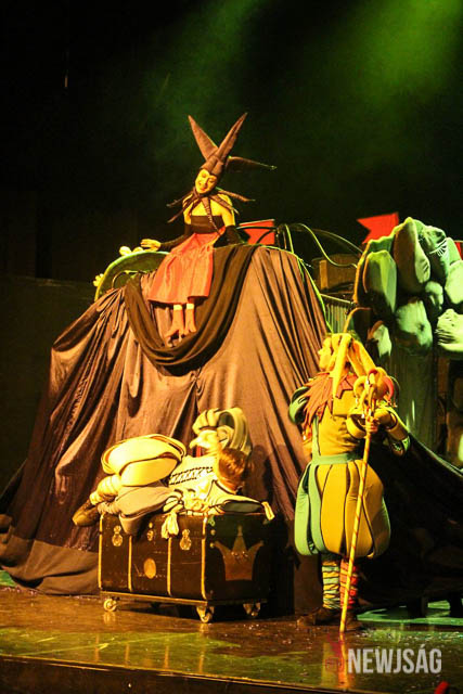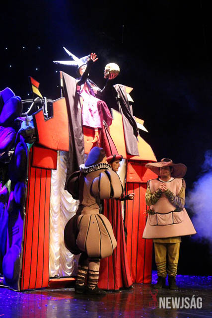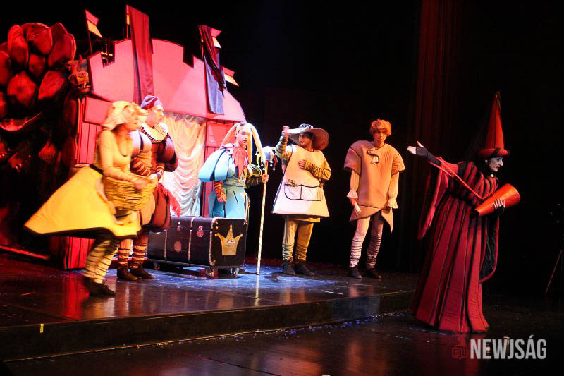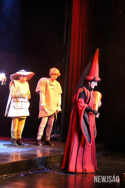 Az előadás végig vidám, kellemes zenével ötvözve. A színészek meséhez illően erősebb gesztusokkal játszottak, de ez a történetbe belefért, hiszen a keretjáték egy vásári komédia. A nyelv ismerete nélkül is igazán belefeledkeztem az előadásba. Ha nem is értettem mit mondanak, a történetet végig tudtam követni, a színészek játéka éppen ezért nagyszerű volt. A közönséget bevonták a játékba többször kellett kimondani a varázsszót: Bajaja, amit a gyerekek hangosan ki is mondtak. Néhány jelenetben lejöttek a szereplők a színpadról, hogy közelebb legyenek a gyermekekhez, és a darab végén felvittek a színpadra pár gyermekeket rizsszemeket szórni az ifjú párra. A fiatalközönség nagyon jól szórakozott az előadás alatt. Csasztvan Andrástól a Cervinus Teátrum igazgatójától megtudtam azt, hogy a kisgyermekeknek előző nap elmesélték a mesét, megismertették velük a történetet, a felsős fiataloknak erre már nem volt szükségük.