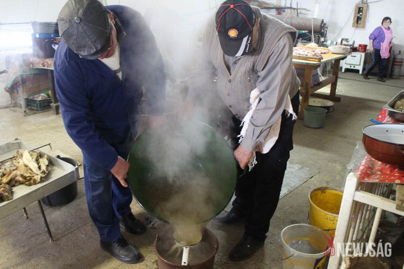 – Annyira jól sikerült a tavalyi disznótor, hogy gondoltam megismételhetnénk – árulja el a nagylelkű gesztus okát a gazda. Idén egy kb. 120 kg-os disznót ajánlottam fel, amit hét órakor szúrtunk le. Azóta már perzseltük, mostuk, szétszedtük az állatot, vagyis volt minden, ami ilyenkor szokásos, hamarosan pedig a feldolgozáshoz látunk hozzá.