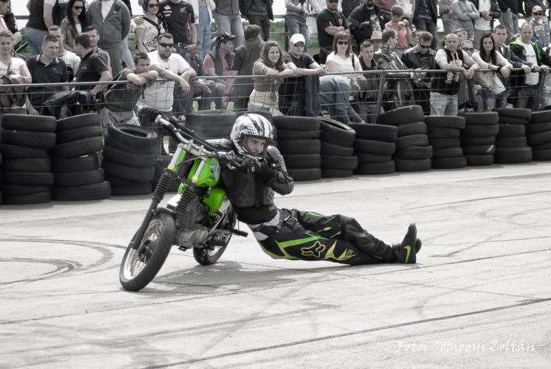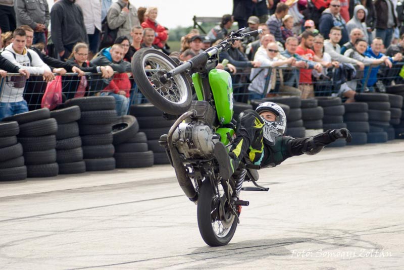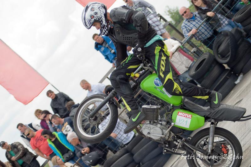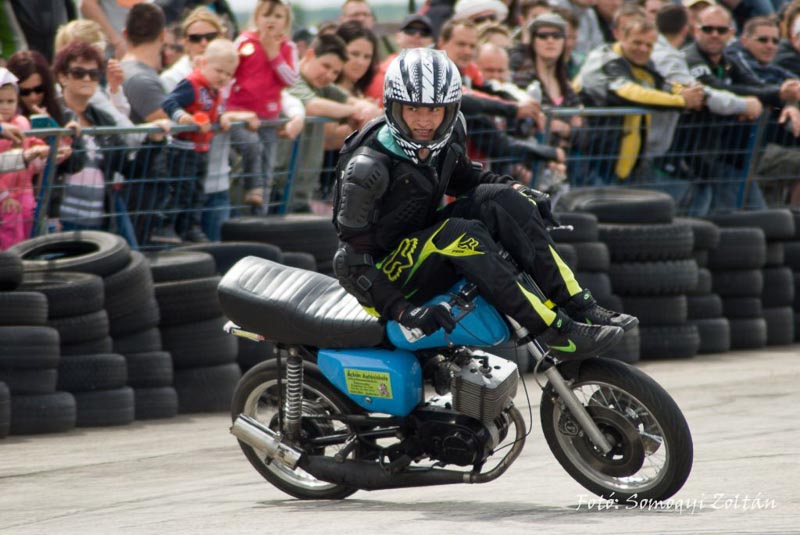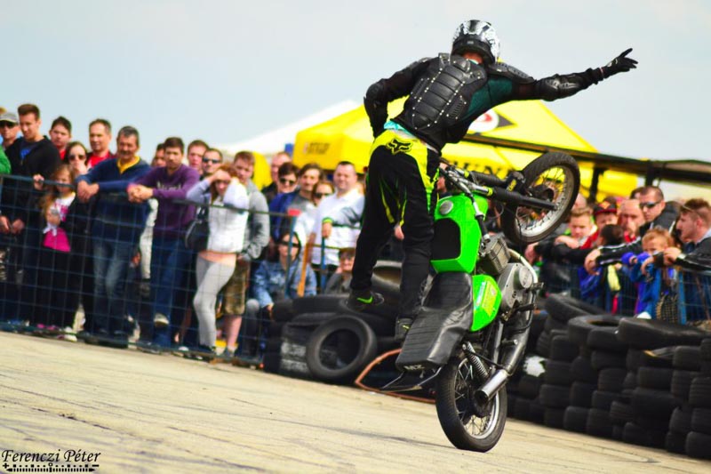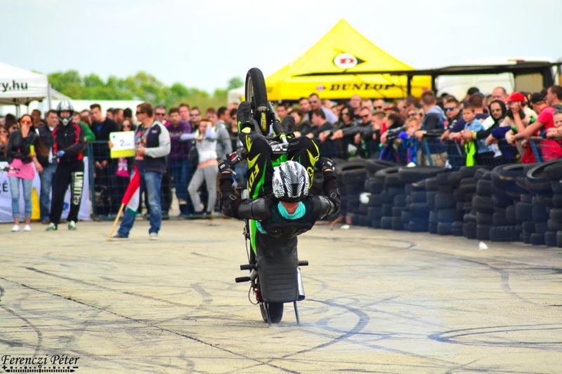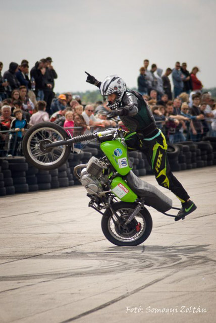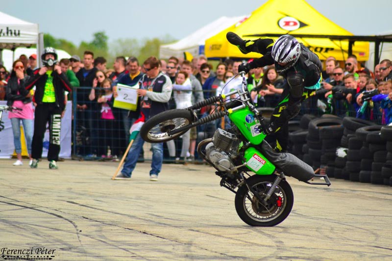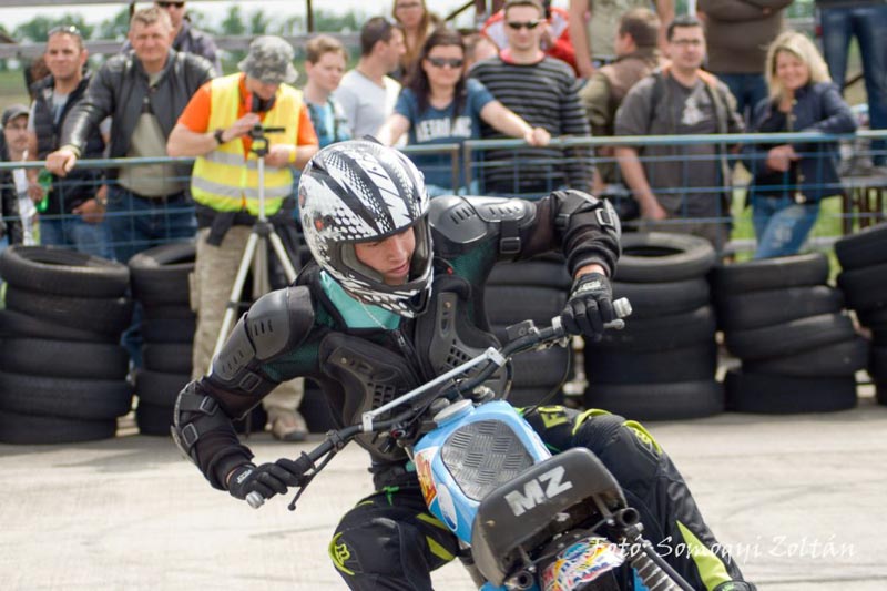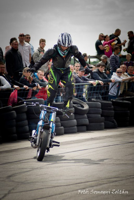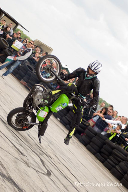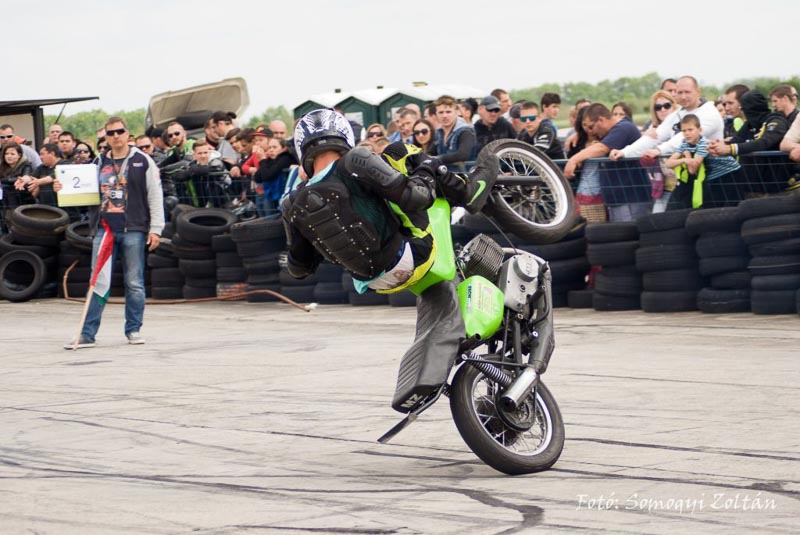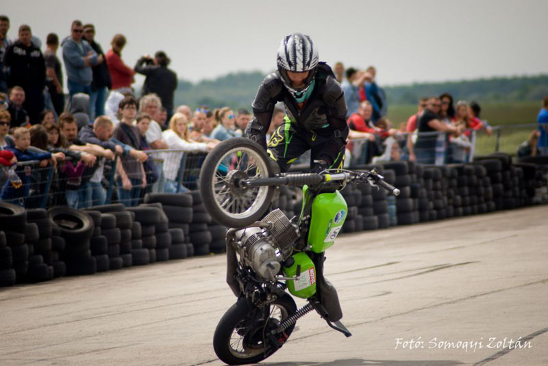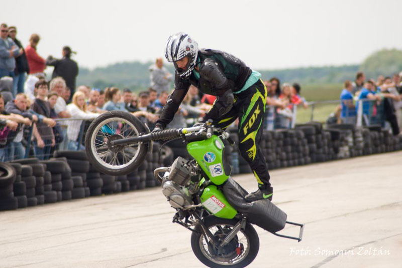 Május 1-én a Honda Autós- Motoros Majálison vált nagykorúvá (18) Kunmadár. Az áprilist idéző szeszélyes időjárási viszonyok ellenére is szép számú közönség látogatott ki a valamikori reptérre. A szokásos autós-és motoros gyorsulási versenyek mellett az idén is helyet kapott a Stunt riding bajnokság második fordulója. Podani Milán az előző heti pécsi sikeres gyakorlatain igyekezett még csiszolni, önmaga elvárásai szerint, ami néhány mozzanat kivételével sikerült is. Ezt bizonyította, hogy a pontozó bírák ezen a versenyen nagy különbséggel jutalmazták az első helyre akrobatikus mutatványait.