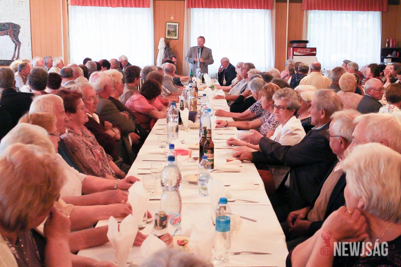 – Az év napjai közül összesen négy van, amelyet fehér asztalnál köszöntünk. Ma is összesen százhetvenöten üljük körbe az asztalokat, ami kifejezi, hogy egyfajta nagy családként tartunk össze, és szeretünk együtt lenni. A szépkorúak köztudottan minden alkalmat megragadnak a közös ünneplésre: legyen ez családi vagy közösségi rendezvény, esetleg városi esemény, ahol mindig előszeretettel jelenünk meg. Ma a férfiakat köszöntjük, akik közül nyolcvanötöt üdvözölhetünk sorainkban – kezdte köszöntőjét Tusjak János elnök.