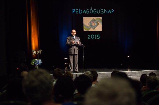 – Tisztelt kollégák, tisztelt vendégeink. Ünnepelni jöttünk ma, első sorban magunkat ünnepelni – kezdte köszöntőjét Laurik László vasárnap délután, a pedagógusok napja alkalmából rendezett ünnepi műsor nyitányaként. – Úgy vélem, hogy felgyorsult, értékmódosult napjainkban mindannyiunknak jót tesz, ha röpke ideig, legalább ma délután csak magunkkal foglalkozunk – folytatta a Pedagógusok Szakszervezetének járási titkára.