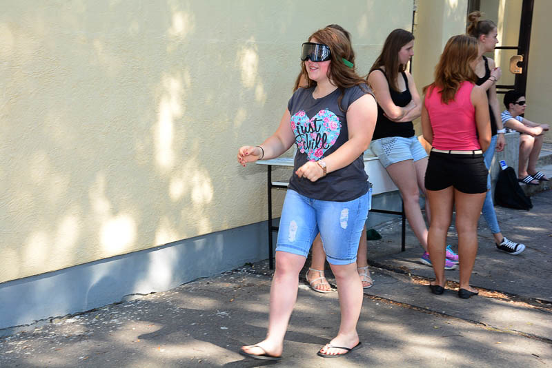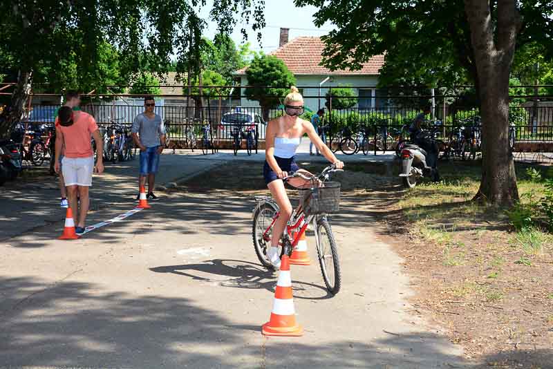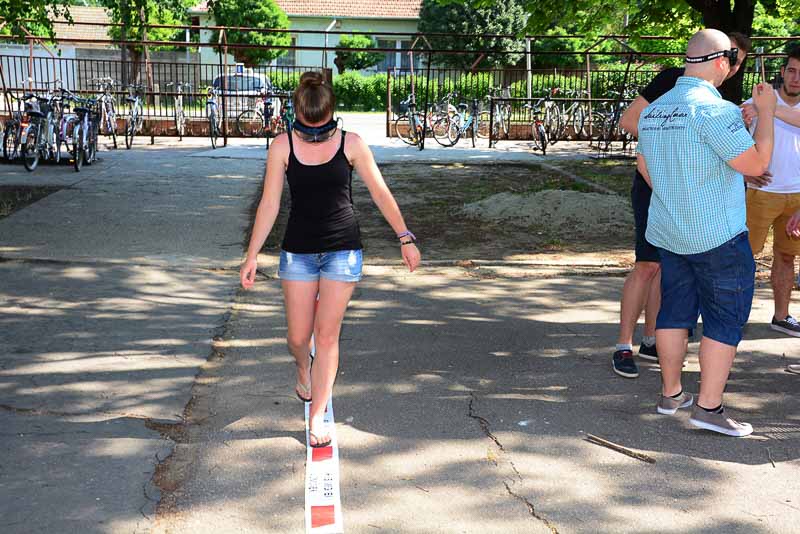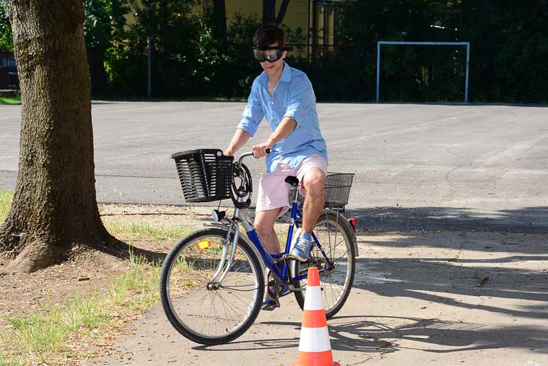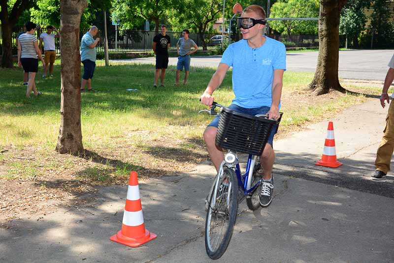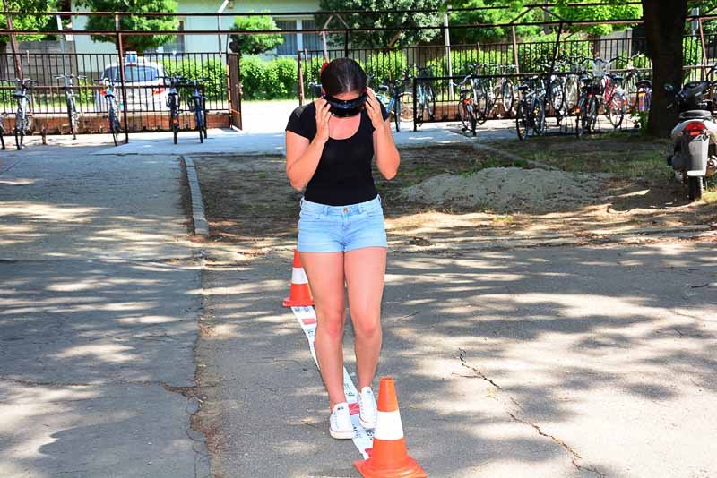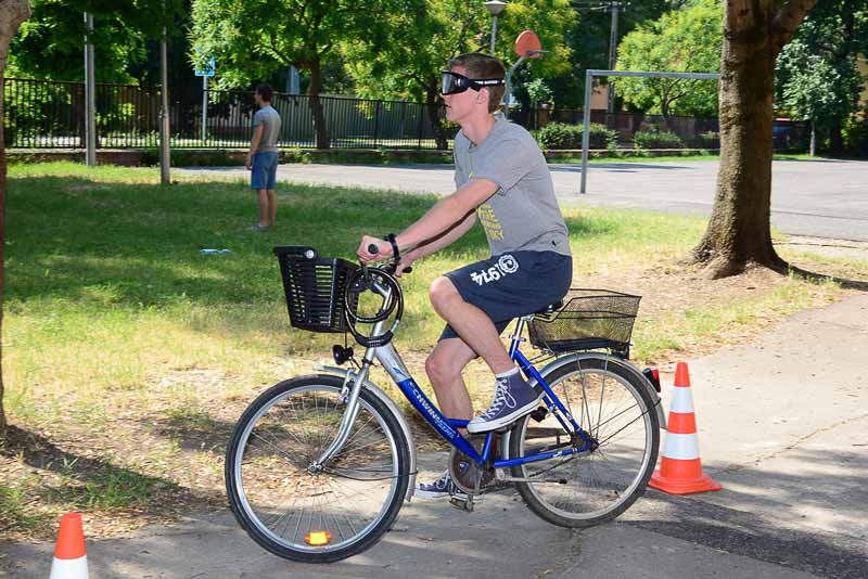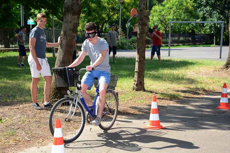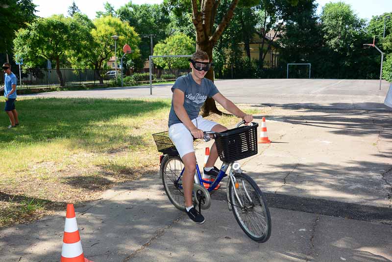 A második rész az elmélet beteljesülése volt. A tanulók interaktív módon próbálhatták ki az iskolánk udvarán speciális szemüvegek segítségével az előadásokon hallottakat. Ezek a szemüvegek a bódult, illuminált állapotot szimulálják, beleértve az óvatosságot, a növekvő reakcióidőt, zavartságot, virtuális torzulásokat, a mélység és a távolság megbecsülésének változását, a periférikus látás csökkenését és a korlátozott mozgáskoordinációt. A zavart, bódult állapot szimulálása garantált volt.