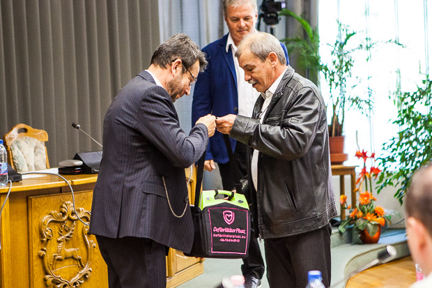 Szarvas Város Egészségügyéért Alapítvány elnöke, dr. Pásztor Gyula egy félautomata életmentő készüléket nyújtott át Babák Mihály polgármesternek és dr. Melis János jegyzőnek a csütörtöki képviselő-testületi ülés elején. Két készülék került beszerzésre, amit az alapítvány szándékai szerint a város két forgalmas pontján helyeznének ki. Az eredeti elképzelés szerint az egyik a piacon, a másik nyáron a Vízi Színházban, télen pedig a Cervinus Teátrumban lenne baj esetén megtalálható. Időközben igény merült fel, hogy az uszodában is legyen egy, de az elhelyezés kérdését a mentők tapasztalataira, ill. a hivatalra bízná az alapítvány elnöke, aki elmondta a félautomata életmentő készülékekről, aminek nagy előnye, hogy gyerekre és felnőttre is alkalmas.