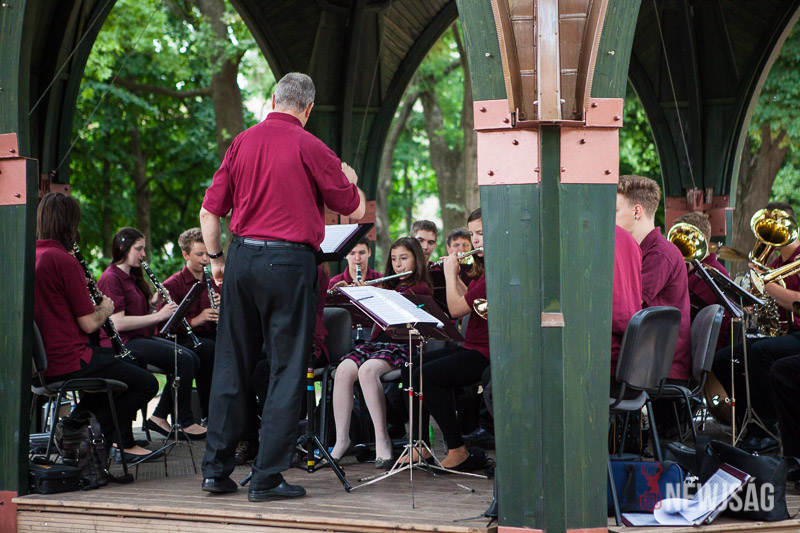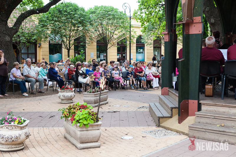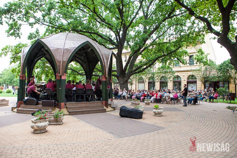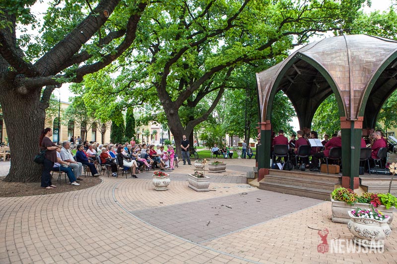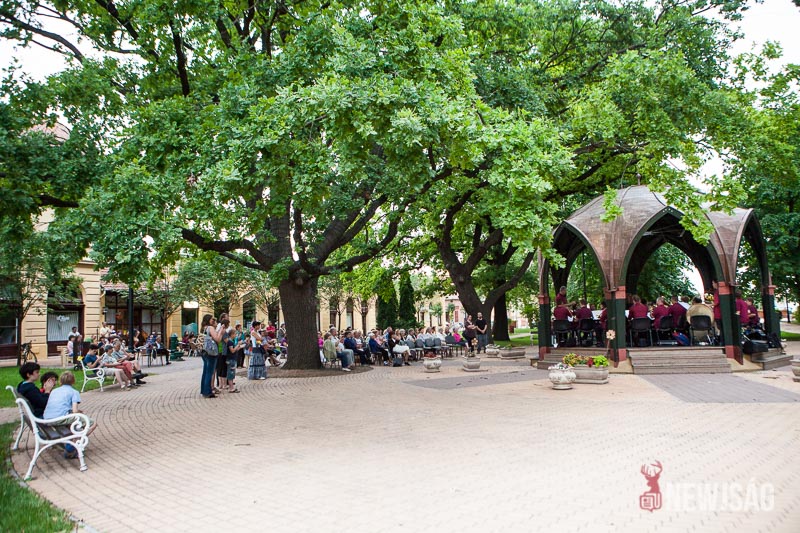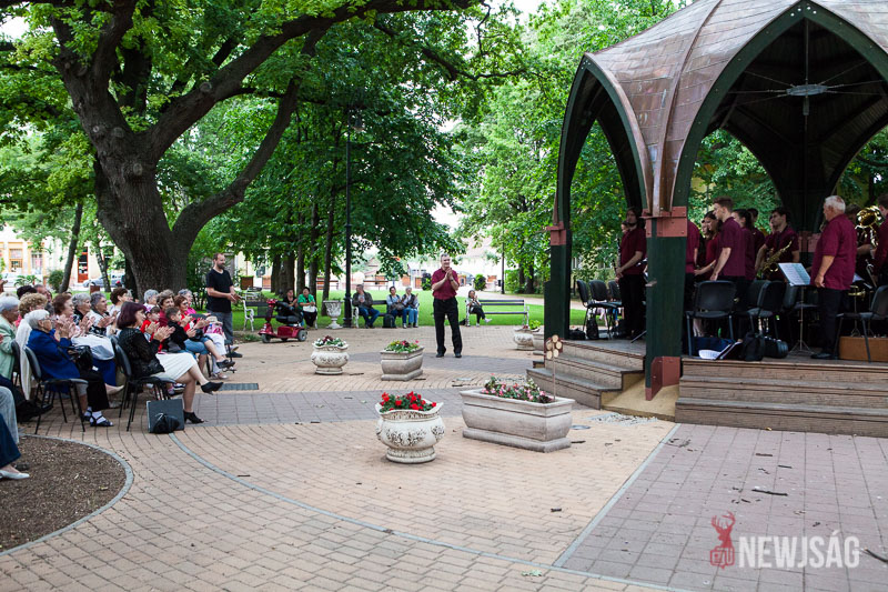 Több szempontból is rekordot döntött a Zenepavilonban a Városi Fúvószenekar tegnap este. Azzal, hogy 28 zenész fel tudott ülni a pódiumra, hitelesítették az építmény befogadóképességet. Igaz, túl sok hely nem marad, de nagyon zsúfolt sem volt. Ha már ilyen szépen összejöttek, Szabados-Tóth Gábor zenekarvezető és karmester úgy gondolta, nem csak egy félórányi térzenével kedveskednek a megjelenteknek, hanem kicsit hosszabban mutatkoznak be a közönségnek. Ötven-ötvenöt percesre tervezték, majd egy és negyed óra lett belőle. Régi magyar indulók, filmek és musicalek zenéi, könnyűzenei örökzöldek és karneválzene is felcsendült az előadás folyamán.