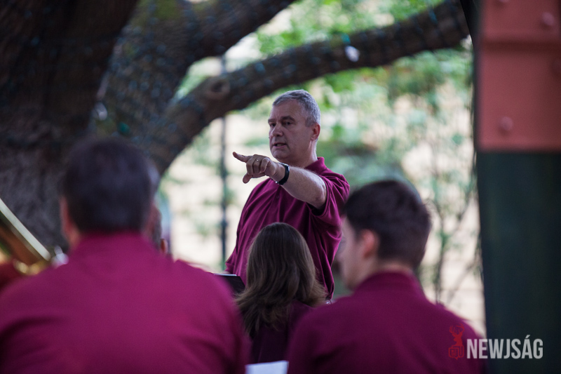 – Vegyes repertoárral készültünk. Voltak hagyományos művek, indulók, különböző karakterdarabok és nagyon sok modern mű volt. Egy ekkora zenekarnak nem lehet fél órát játszani. Ha már ennyien kitelepülünk, akkor egy órát kell zenélni. Ez egy egyórás, ötvenöt percre tervezett műsor volt – mondta a zenekar vezetője, Szabados-Tóth Gábor a koncert után.