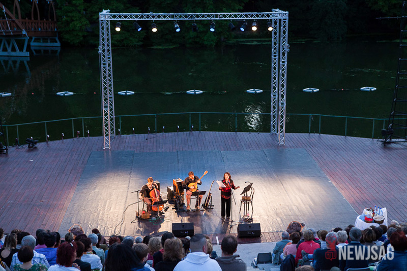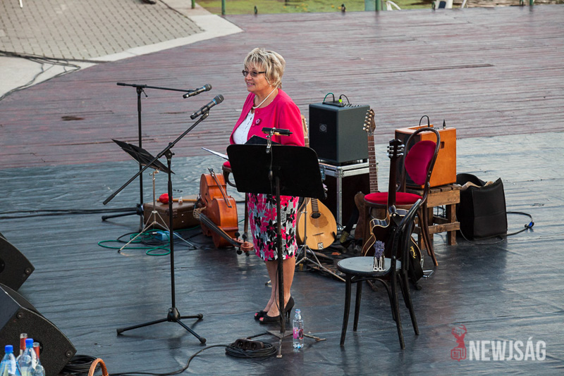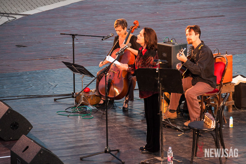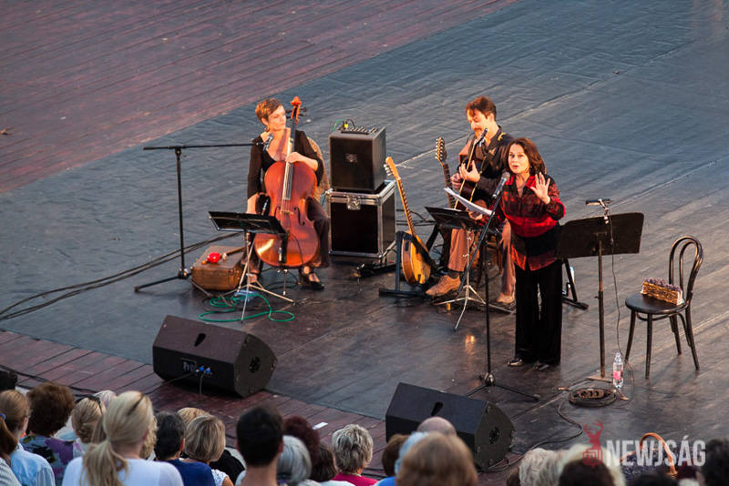 Závogyán Judit a „Szarvasért” Alapítvány elnöke köszöntötte a nézőket csütörtökön este a Vízi Színház színpadán házigazdaként. Nem lehet elmenni szó nélkül Judit sajáttermesztésű levendulái mellett sem, amely két hatalmas kosárban a színpad szélén illatoztak. Sőt, Hűvösvölgyi Ildikónak is jutott egy kicsi kosárban. Závogyán Judit stílszerűen egy Weöres Sándor idézettel, az este címéhez kapcsolódva adta át a szót a művészeknek.