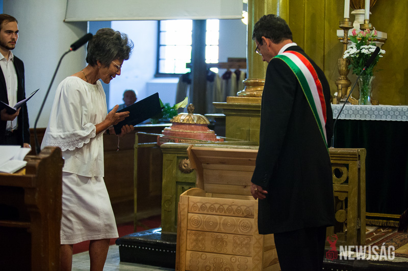 Babák Mihály polgármester is háláját fejezte ki, ahogy ő nevezte, tót telepeseknek, majd kezdetét vette a kitüntetések adományozásának ünnepélyes ceremóniája. Ez évben is új díszpolgárt választott a város képviselő testülete. Elsőként ő vehette át a város legrangosabb elismerését.
